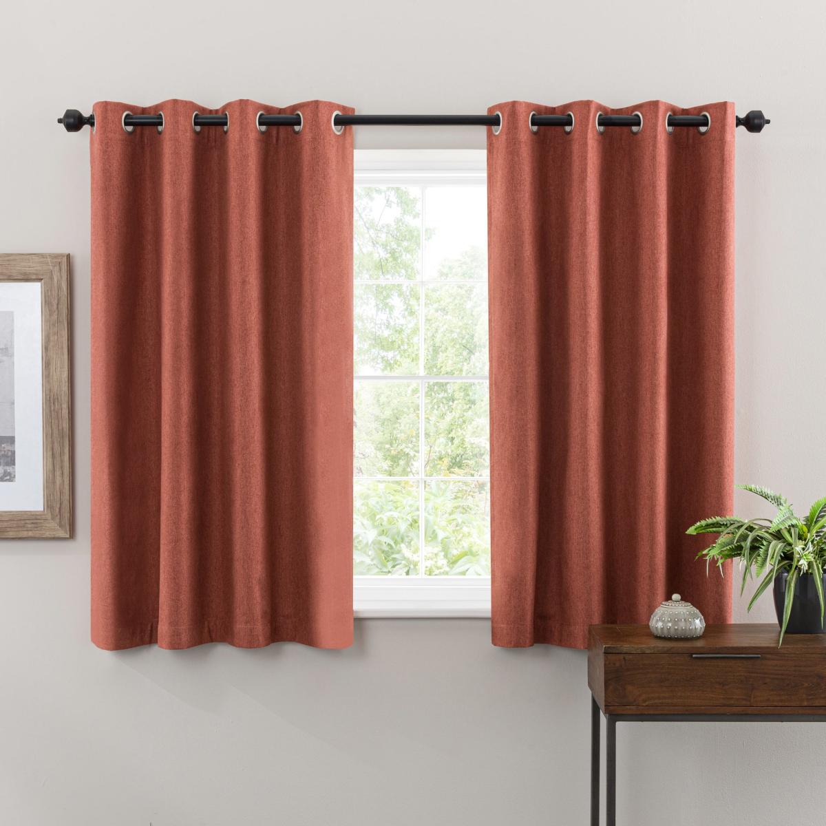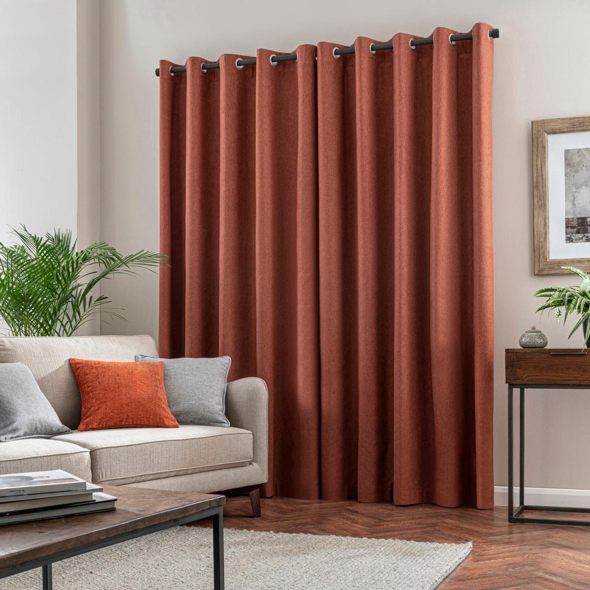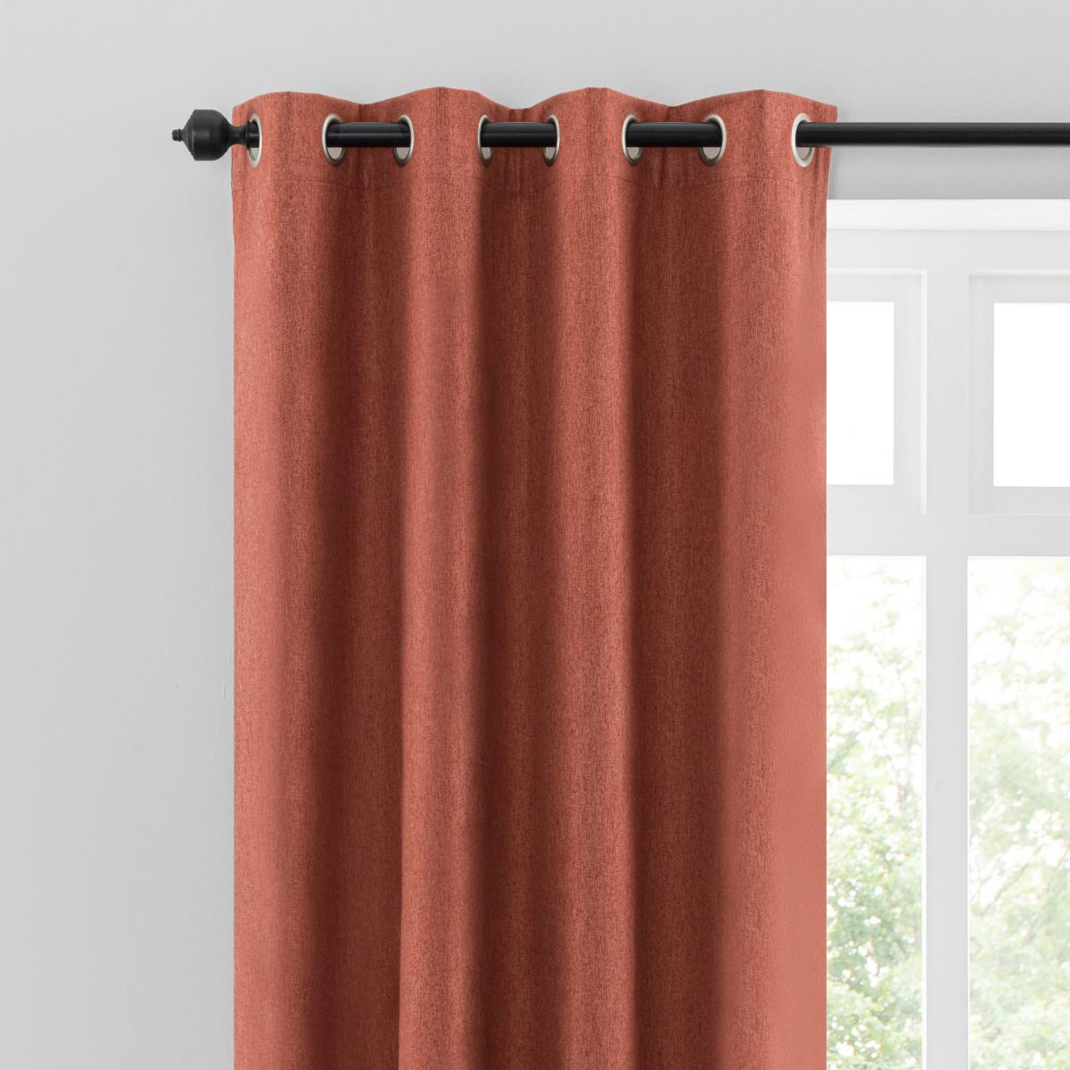 Crafted with a brushed finish for a soft texture, these apricot eyelet curtains feature a premium blackout coating making them great for kids' bedrooms, for light sleepers or for a room where you want to block out the sun. The blackout coating not only helps keep your room dark, it also offers temperature regulating properties helping to keep you room cool in summer and warm in winter. Complete with an eyelet header for elegant folds and easy installation, these curtains are available in a variety of sizes to suit your requirements. Please note: these curtains are sold as a pair. Professional cleaning in Hydrocarbon or equivalent reccomended.