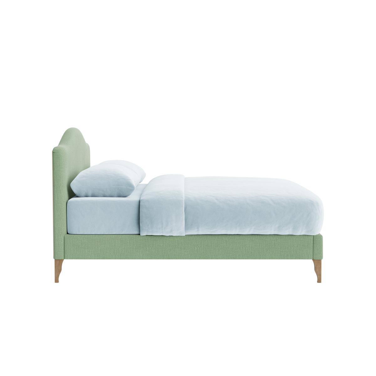I love this bed frame for its clean, understated silhouette which works beautifully in both contemporary and transitional interiors. The soft green tone adds a subtle touch of colour without overpowering a space, making it perfect for creating a calming bedroom retreat. It pairs well with neutral textiles and can be styled effortlessly with cosy throws, textured cushions, or even layered with patterned bedding for visual interest. For practical styling, consider positioning the bed alongside simple bedside tables with minimal accessories, allowing the frame to remain a subtle focal point. Its elegant design and versatile colour make it a flexible choice that can adapt to various decors, from minimalist to eclectic schemes.