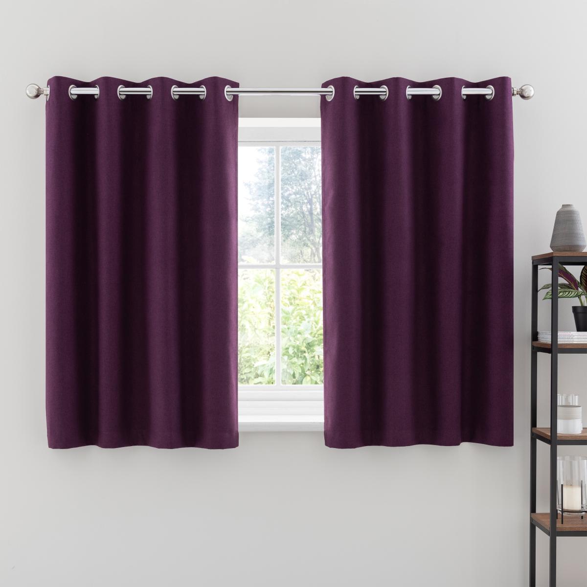 Bring effortless style and sophistication to your home with this pair of brushed wool effect curtains crafted with an aubergine colourway. Complete with an eyelet header, these curtains have elegant, loose folds that look stylish within any room. Designed with a blackout coating to stop unwanted light entering your home, these curtains help to ensure a good night's sleep and will provide extra privacy by blocking the view into the room from outside. Temperature smart, these curtains are effective at keeping out draughts in winter and blocking out the heat in summer. It's these thermal properties that make Luna curtains ideal for all seasons. Coordinate the curtains with the matching cushion cover for a stylish room look. Please note:. Pattern matching can not be guaranteed across multiple pairs of curtains. This collection is verified by OEKO-TEX® and independently tested for harmful substances as well as manufactured using sustainable processes under socially responsible working conditions.