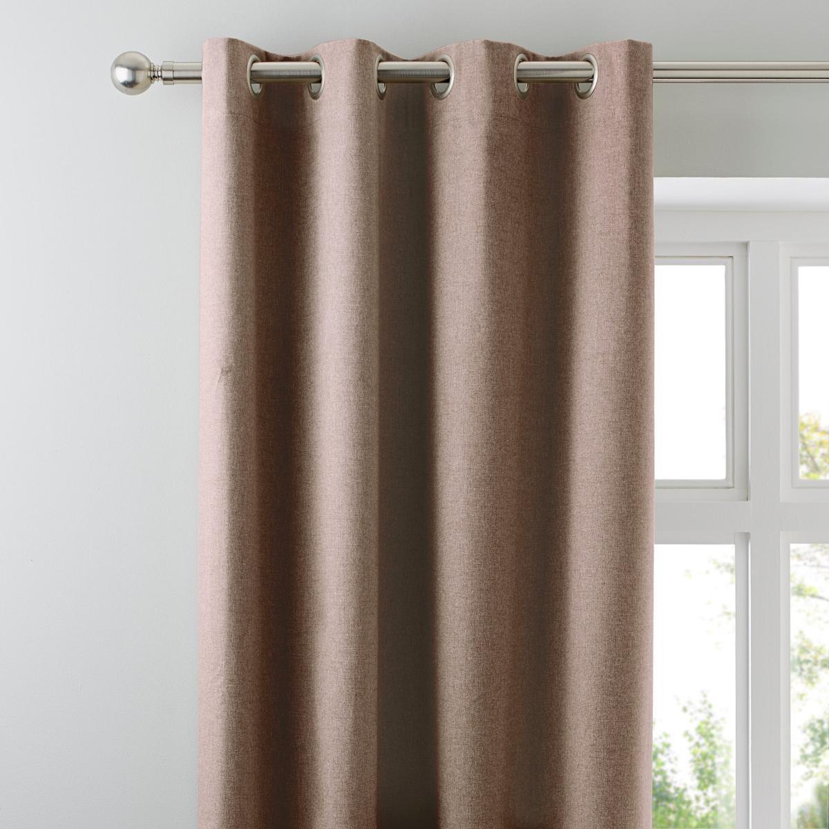 Simple and plain in design to bring effortless style to your home, our Luna curtains have been crafted from a high quality fabric with a brushed effect finish for a soft and luxurious feel. Designed with an eyelet header, this pair of curtains hang easily with elegant, loose folds. Complete with a blackout coating that completely blocks out unwanted external light helping to ensure a good night's sleep and to provide extra privacy by blocking the view into your room from outside, Luna curtains are temperature smart meaning they help to regulate the temperature in your home for every season by keeping the warmth in during winter and blocking out the heat during summer. Available in a range of contemporary colours with matching accessories available separately, our Luna curtains come in variety of sizes to suit your needs. Don't forget your. Curtain pole. Please note: these curtains are sold as a pair. Professional cleaning in Hydrocarbon or equivalent reccomended.