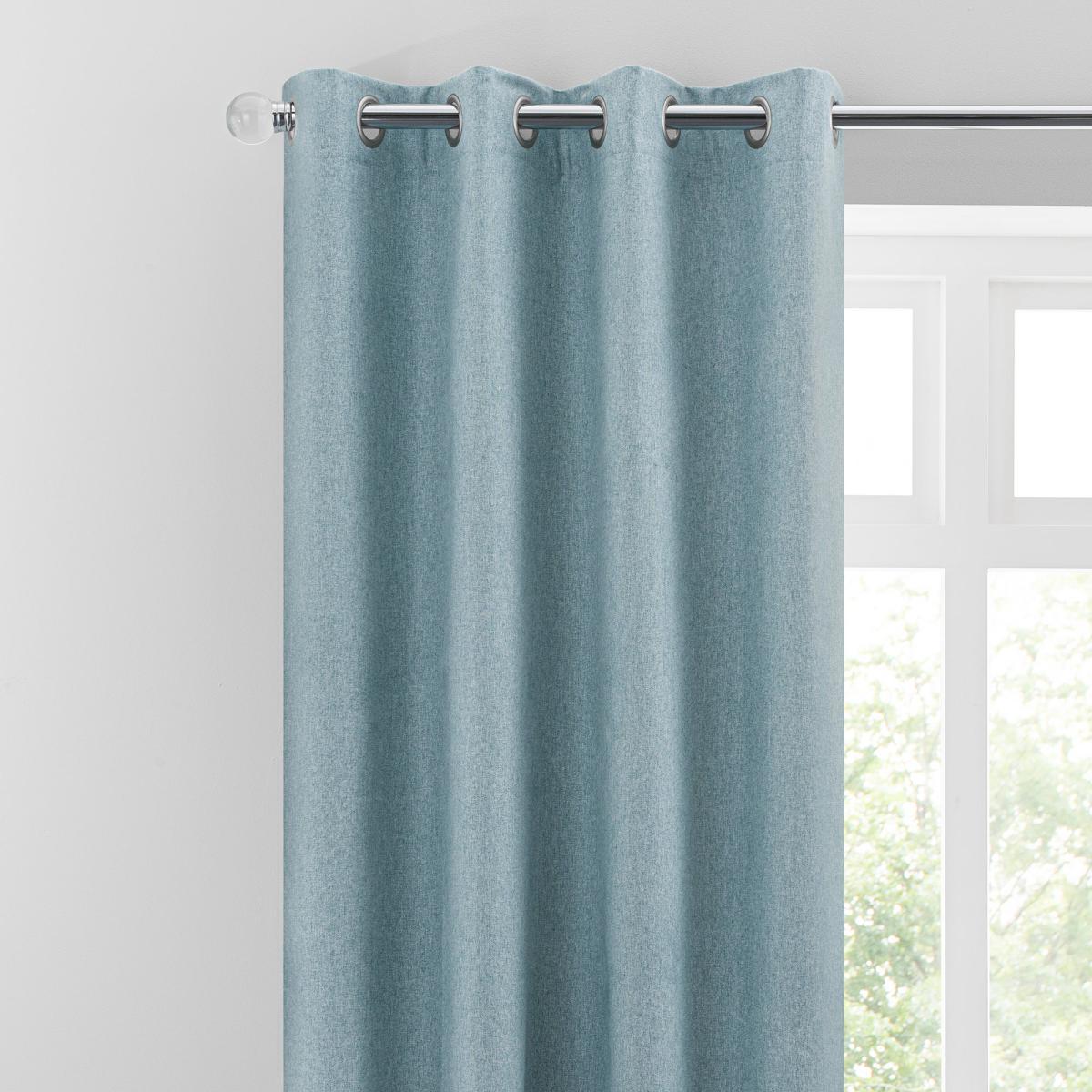 Designed in an elegant soft blue colour, our pair of Luna curtains are perfect for bringing an effortless style and sophistication to your home. Complete with a modern eyelet header to create loose folds, these curtains have been made from high quality materials and boast a stunning brushed effect finish for a soft, luxurious touch. Finished with a blackout coating to stop unwanted light from entering your home, these curtains are ideal to ensure a good night’s sleep whilst providing extra privacy by blocking the view into the room from outside. Ideal for all seasons, our Luna curtains are Temperature smart effective at keeping out draughts in winter and blocking out the heat in summer. These curtains are available in a selection of sizes with coordinating items available to purchase separately. Please note: these curtains are sold as a pair. Professional cleaning in Hydrocarbon or equivalent reccomended.