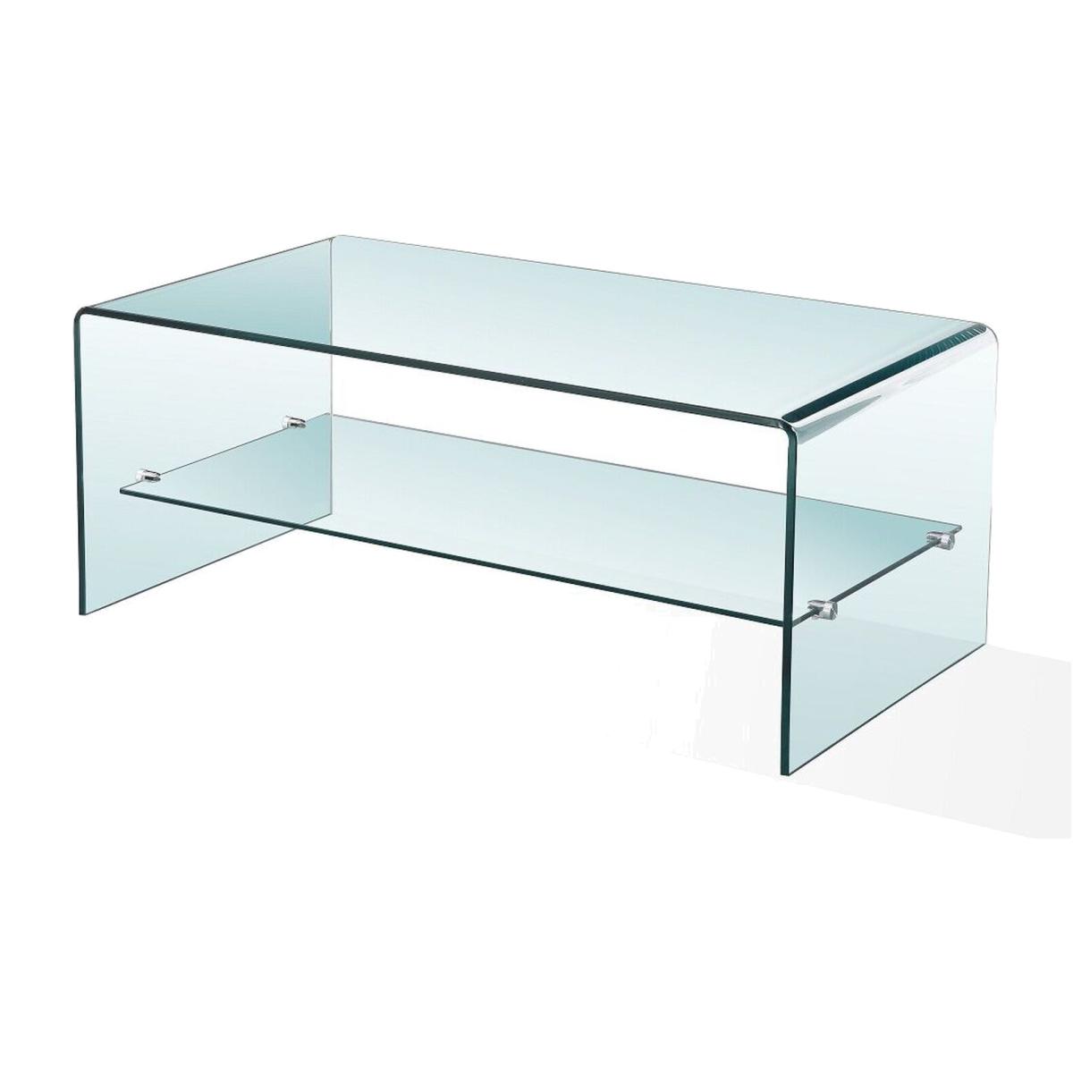 pThe stunning Luna curved clear glass side table with shelf, is a minimalist statement piece, contemporary in application and timeless in design. Made from a single sheet of transparent glass using a process pioneered in Italy during the 1930s. This designer coffee table with glass would look ideal in any residential or commercial setting.pp. The contemporary Luna tempered clear glass coffee table for living room will create the feeling of light, airy space in any room thanks to its fully transparent glass design. Made from 12mm thick tempered glass, the table has a minimalist design and complements a variety of home decors.p p. The Luna features a 10mm thick tempered glass shelf, handy for keeping things tidy in the living room. With the addition of the shelf the Luna can also be used as a modern TV unit, the ideal platform to proudly display your widescreen TV, DVD player or games console.pp. All our coffee table centrepieces come with a 12 month manufacturers warranty and no quibble 30 day money back guarantee, so you can buy with confidence.p
