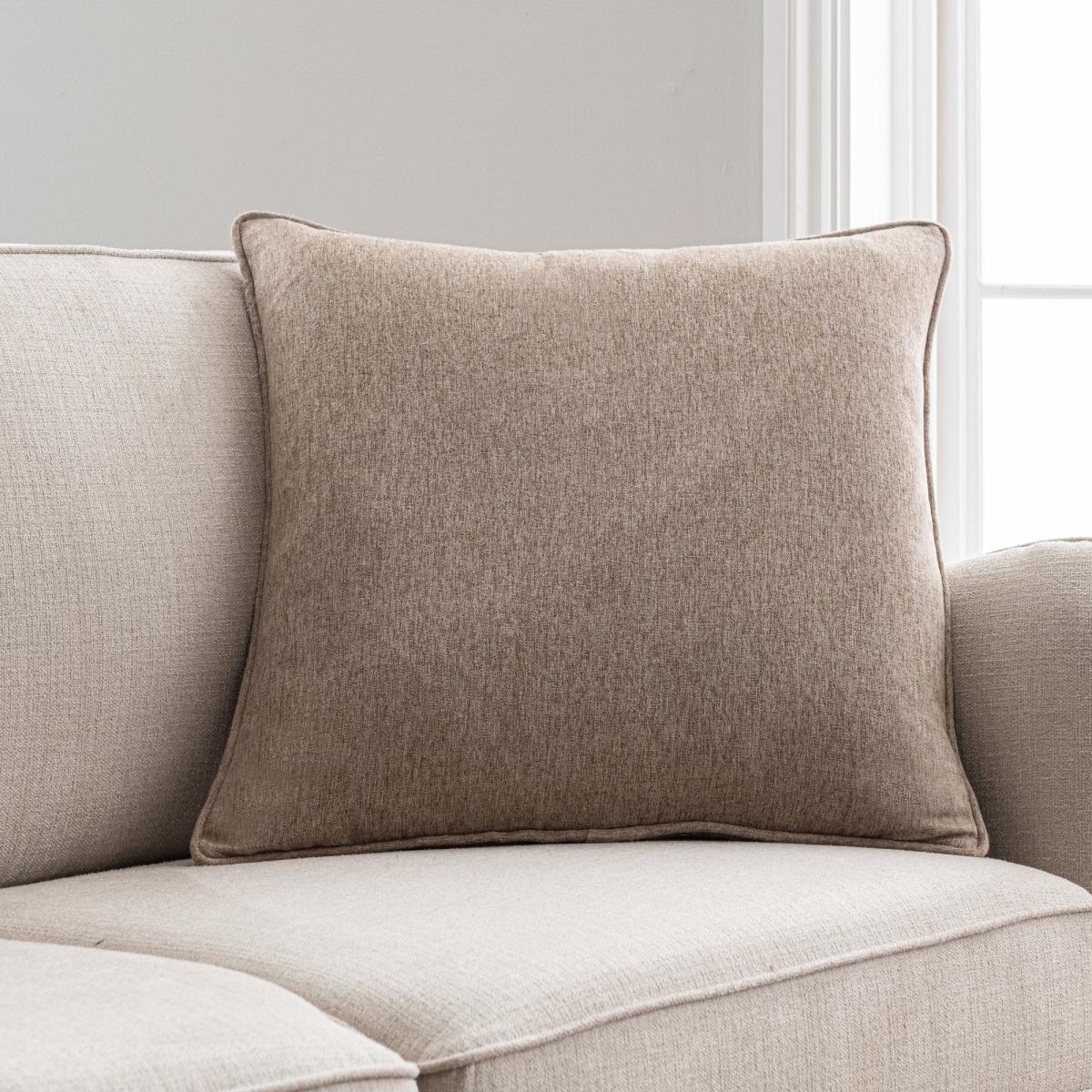 These beautiful 55x55cm cushion covers are the perfect addition to your home. With a luxuriously soft brushed, textured feel and self-piped for a classic finish, the modern colourway will suit a range of interiors as well as coordinating with other curtains and blinds within the Luna range.