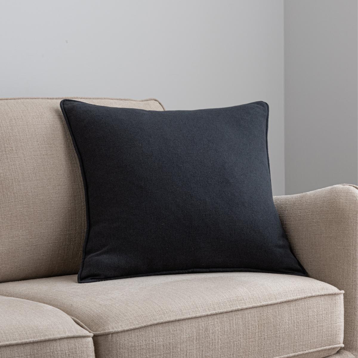 I love this black cushion cover for its versatility and sleek aesthetic. It works well in modern, monochrome, and minimal interiors, offering a sophisticated pop of contrast without overpowering the space. It's also a practical choice due to its dark colour, which hides stains and wear easily. styling tips? pair it with textured throws or patterned cushions in neutral tones for visual interest, or keep it simple for a clean, contemporary look. It’s perfect for adding depth to a neutral sofa or bed, and can be layered with other cushions for a cosy, inviting feel.