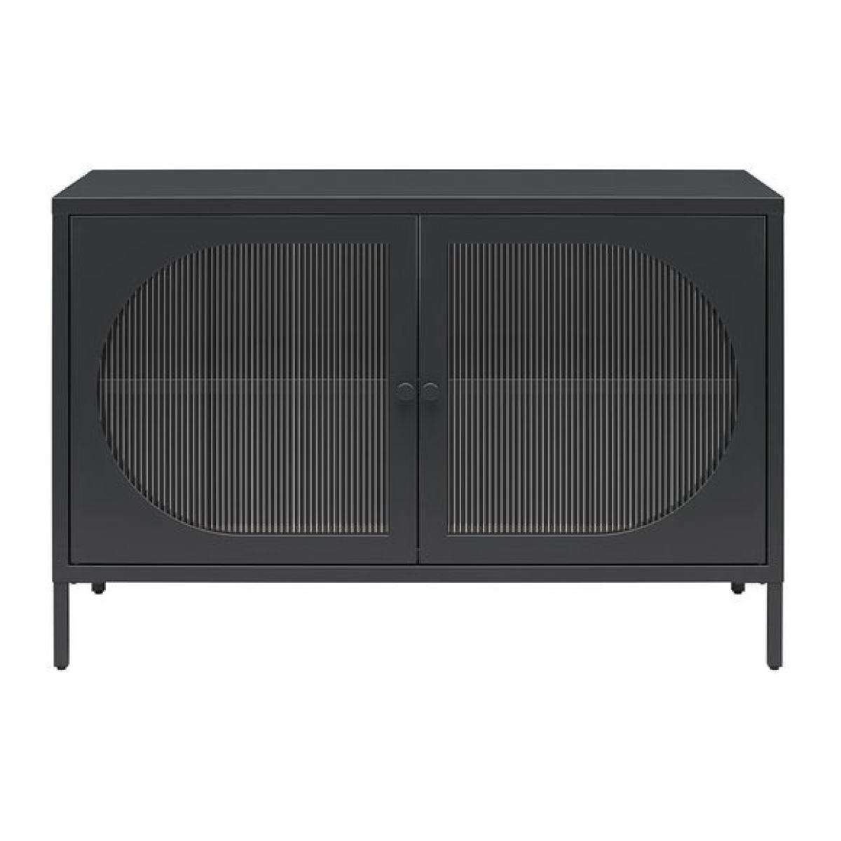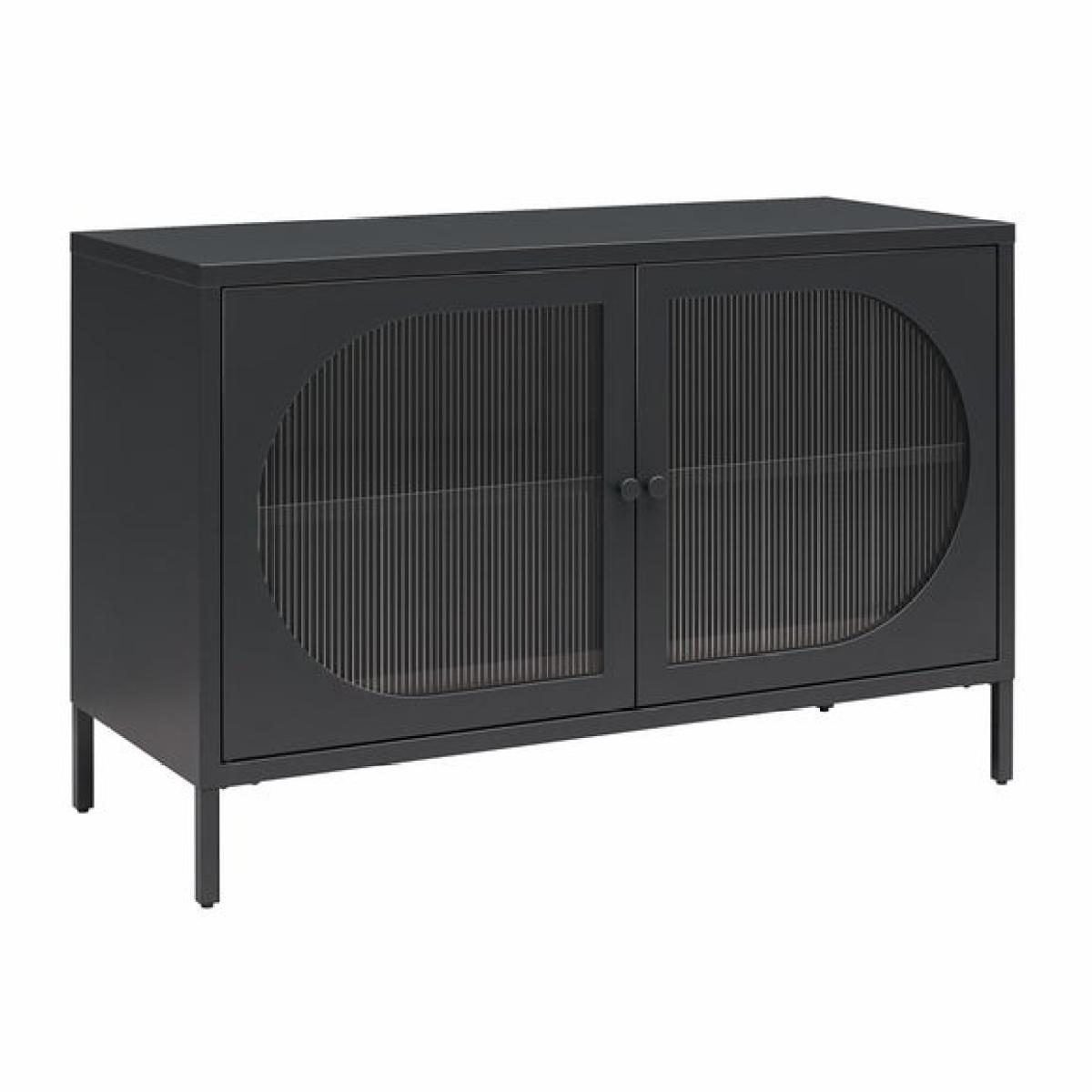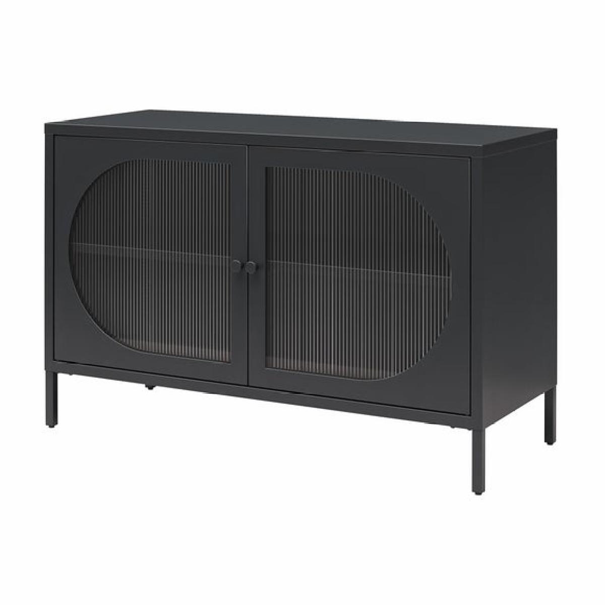 * Modern design * Oval, fluted glass doors * Metal frame This sideboard is the perfect storage solution with a touch of sophistication. Featuring fluted glass doors and a sturdy metal frame, this two-door cabinet adds both elegance and functionality to your space. With one adjustable shelf inside, it offers versatile storage for a variety of items.