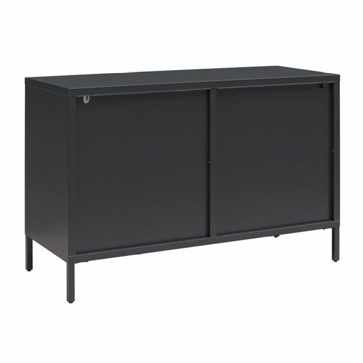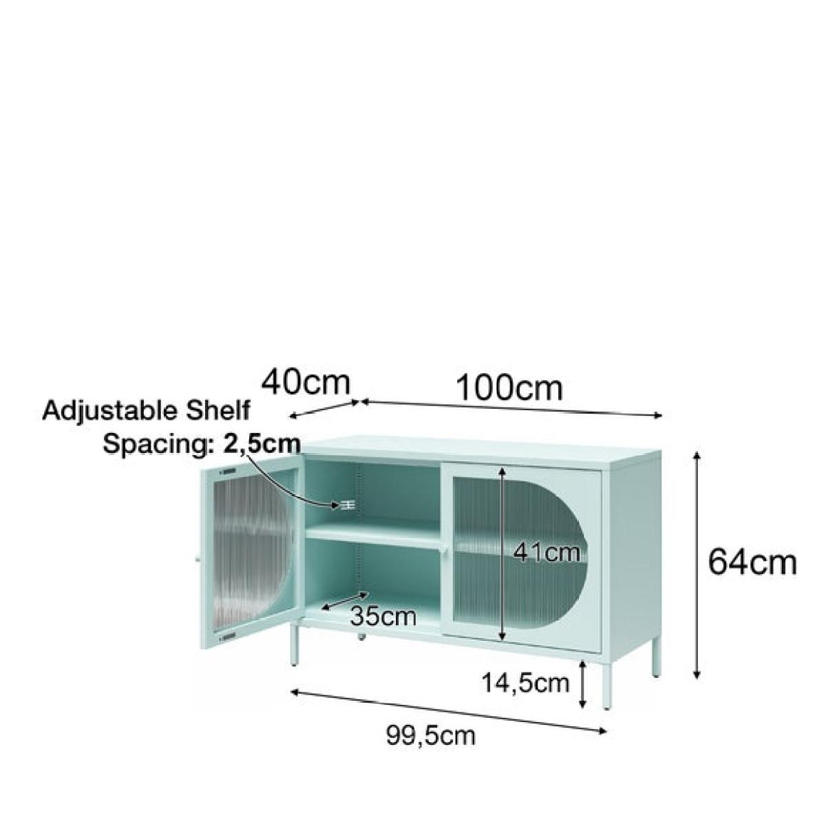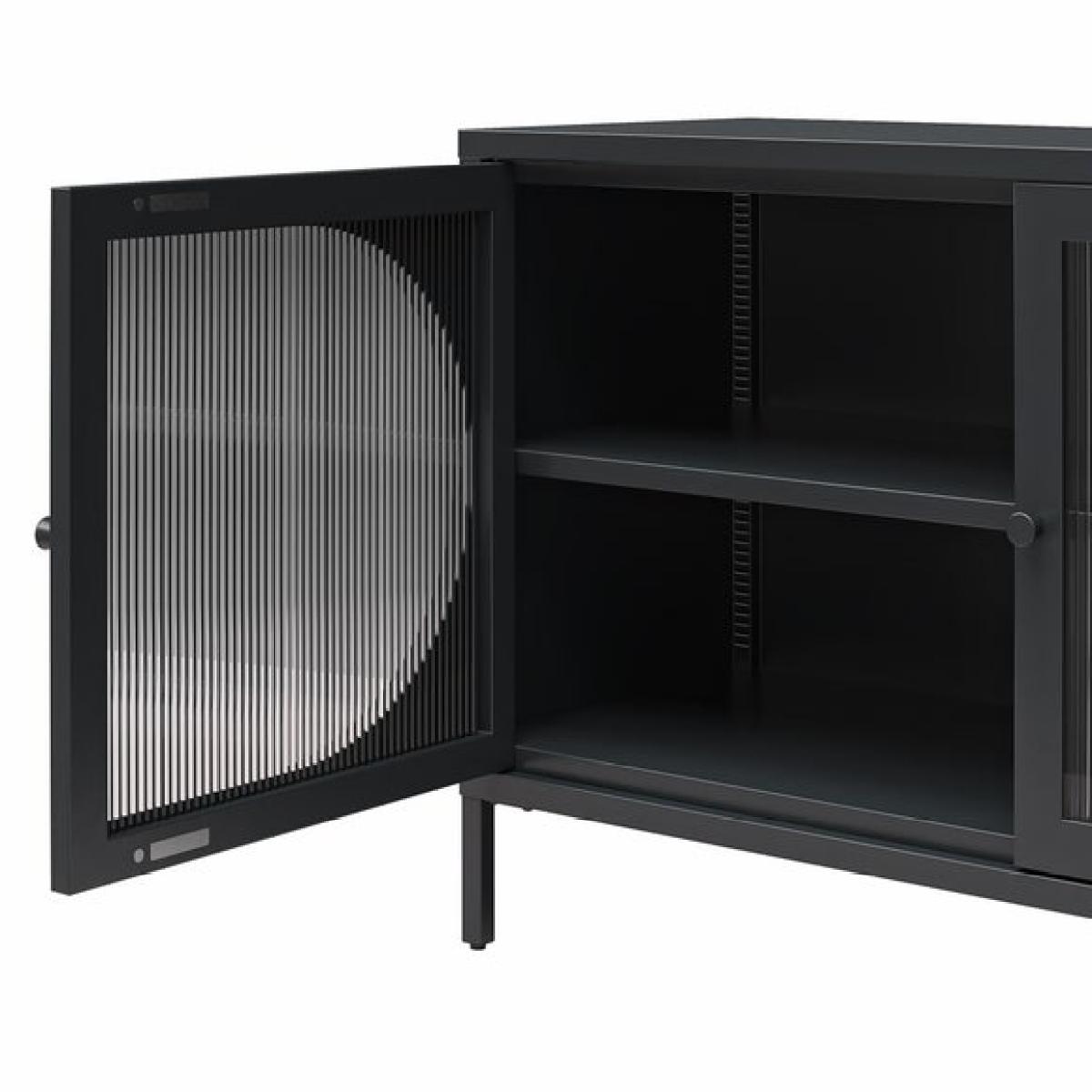 * Modern design * Oval, fluted glass doors * Metal frame This sideboard is the perfect storage solution with a touch of sophistication. Featuring fluted glass doors and a sturdy metal frame, this two-door cabinet adds both elegance and functionality to your space. With one adjustable shelf inside, it offers versatile storage for a variety of items.