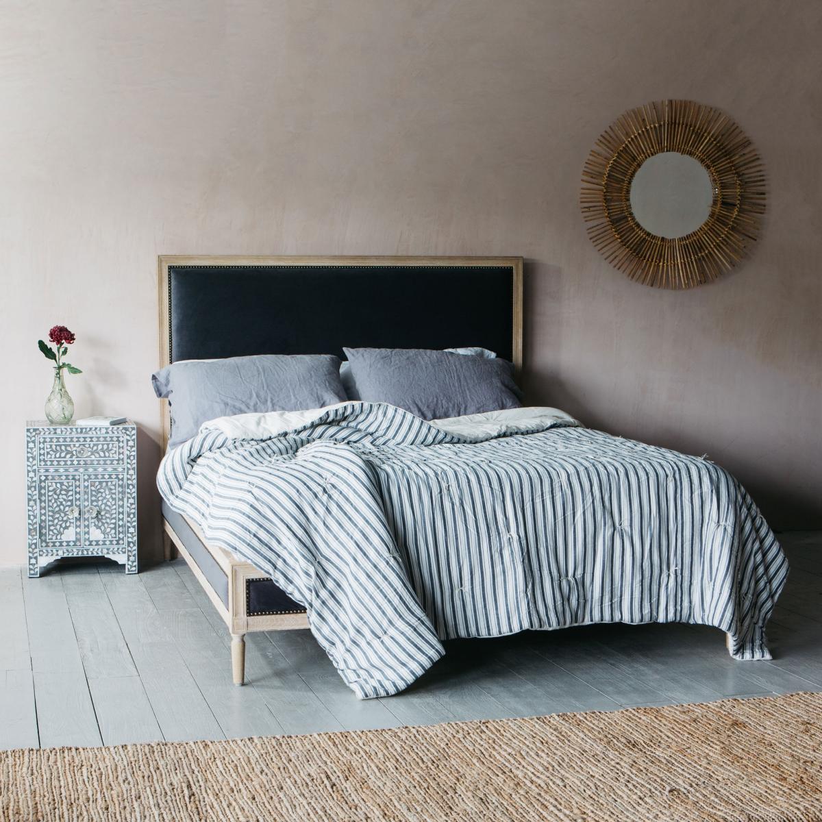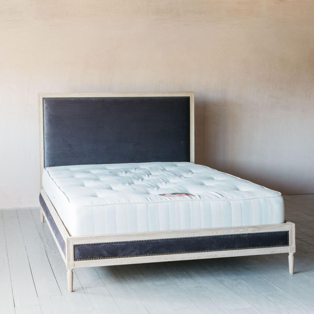 Beautifully upholstered in grey velvet, the headboard of our Luna bed will create a subtle focal point in any bedroom. A low profile footboard is upholstered to match, while the simple ash wood frame features turned legs, giving this piece a refined, contemporary edge. Available in king and super king. Fabric swatches are available by contacting our. Customer Services team.