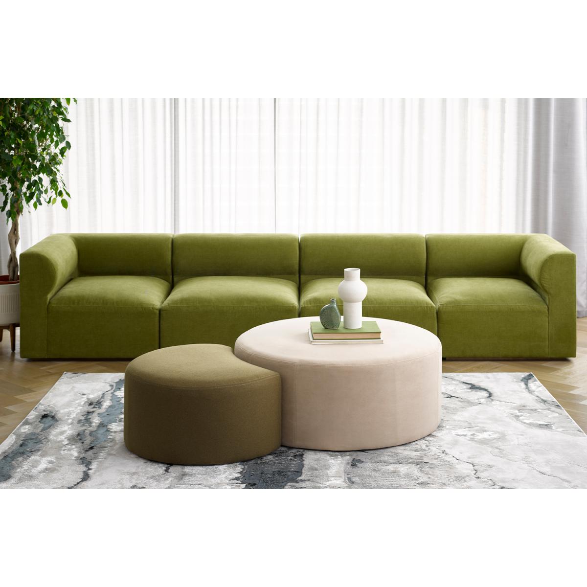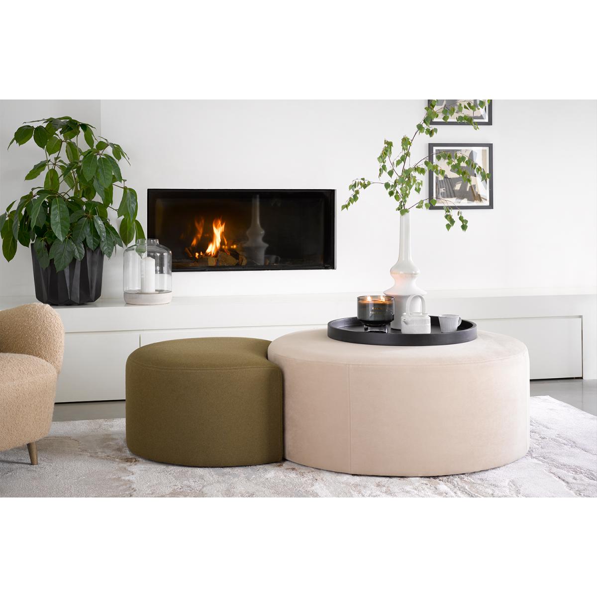 Our chic Luna collection offers a unique twist on modern luxe. With curves in all the right places, the large round pouffe makes a statement as a solo piece - but pair with the half-moon pouffe and wooden tray to really raise the style stakes. Designed to look striking at any angle in 360, this coffee table come footstool collection is perfect for flexible modern living.