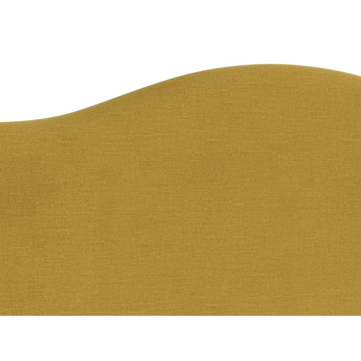 I love this headboard for its understated elegance and versatility. Its soft, curving shape makes it suitable for both contemporary and vintage-inspired interiors, adding a touch of softness to the space. The mustard yellow hue works particularly well in eclectic or colour-rich schemes, but also pairs beautifully with neutrals for a more modern look. Practical styling tips include layering with textured bedding, like linen or velvet, to enhance its tactile appeal, or topping with decorative cushions in complementary colours for added visual interest. It’s a great piece to anchor a cosy, inviting bedroom while allowing for flexibility in styling different decorative accents.
