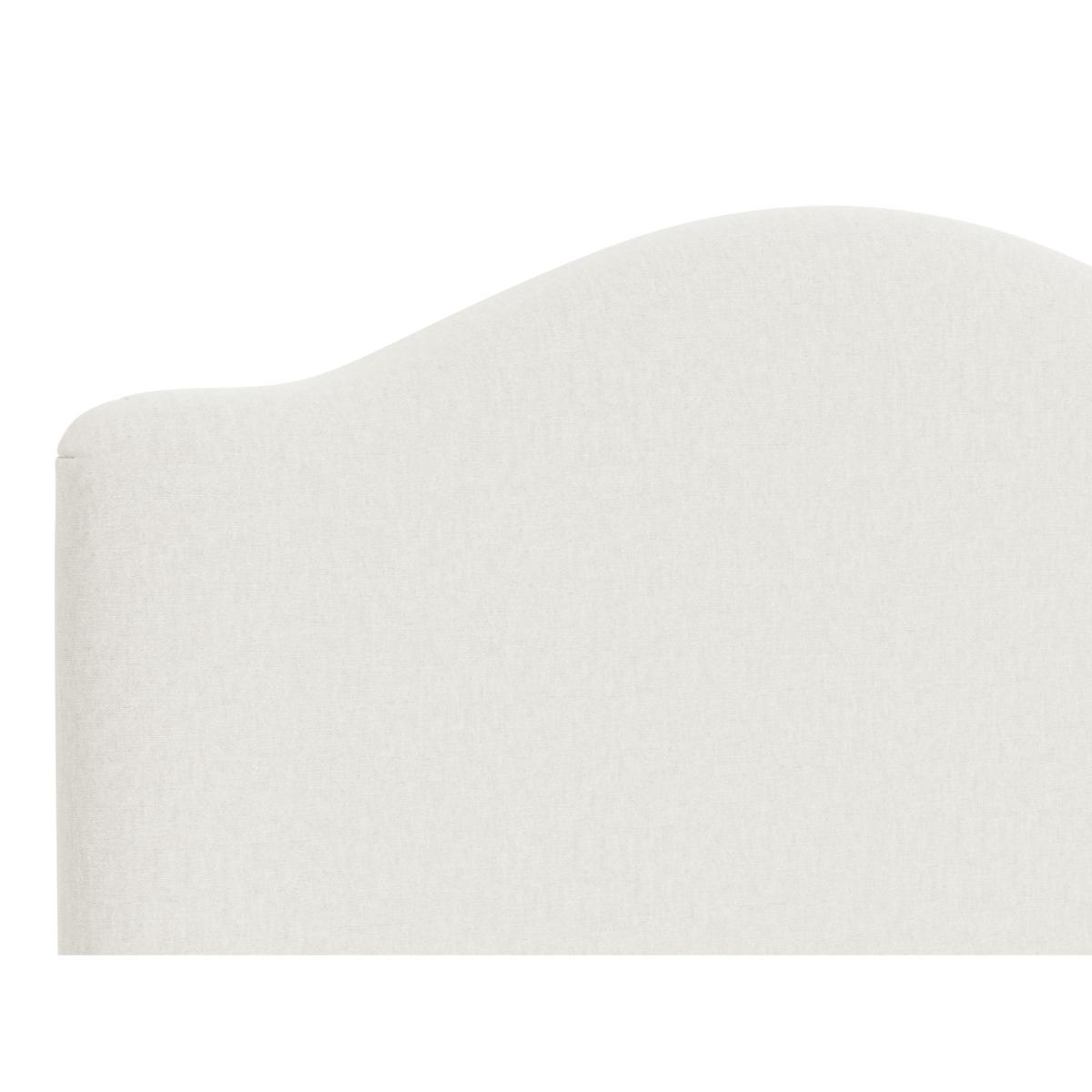 Sometimes back of an envelope designs are best. This headboard has no piping. No studs. No buttons. Just a lovely simple curve. Yum.