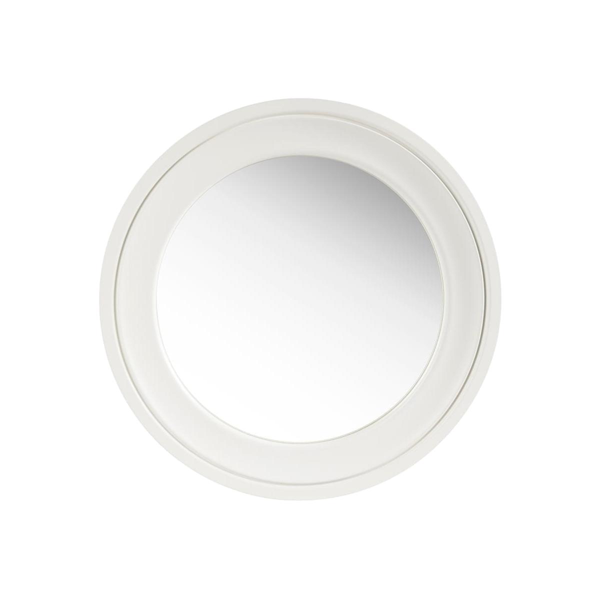Lustrous simplicity meets everyday elegance in this perfectly proportioned ivory-framed mirror. This refined circular piece, features a gently textured ivory frame that adds subtle warmth to any space while providing a functional reflecting surface ideal for both practical use and decorative enhancement.