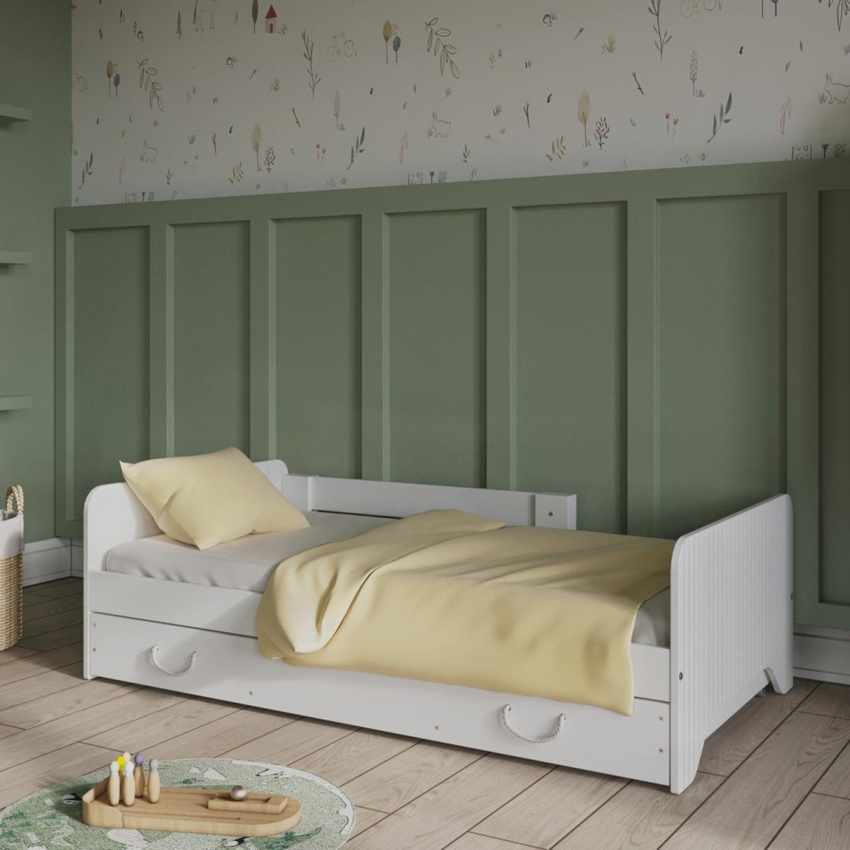 Discover the Luna bed, a practical and comfortable solution perfect for your child's bedroom. Crafted from solid pine wood and high-quality MDF, this bed is designed to last your little one up to 14 years of age or until they reach a height of 1.5m. It includes sturdy bed slats, two wooden guard rails, and our Deluxe Quilted Aloe Vera 10cm foam mattress, ensuring a peaceful and restful night's sleep. Our Deluxe Quilted Aloe Vera mattress guarantees a healthy and rejuvenating sleep experience for your little one. Crafted with medium-firm foam and featuring a quilted design, this mattress offers optimal comfort and support. The hypoallergenic cotton cover, infused with Aloe Vera extract, provides antibacterial properties and soothing effects for your child's delicate skin. Not only is the quilted mattress cover plush and cosy, but it is also conveniently washable, allowing for easy maintenance and cleanliness. Say goodbye to sleepless nights and welcome a peaceful slumber with our Deluxe Quilted Aloe Vera mattress. Additionally, the large under bed drawer provides ample space to store your child's toys, clothing, games, bedding, and more.