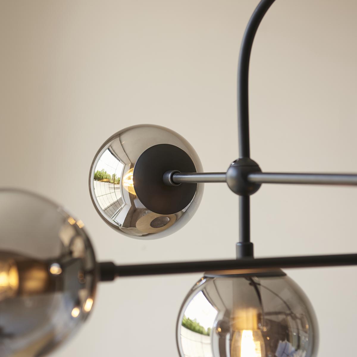 Introducing Luna, a modern range with the perfect level of cosy glow. This ceiling light, showcasing six perfect moon-like spheres of opal glass, illuminates an ambient light which is beautifully contrasted by matt black metalwork.