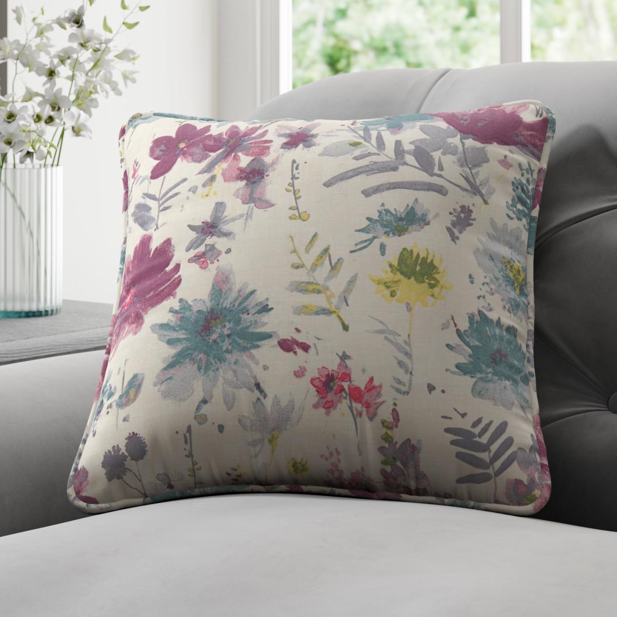 Designed with a floral pattern, the Luna made to order cushion cover will add a vibrant colourway and welcoming touch to your home. Available in both a plain and piped design, this cushion cover can be paired with our matching made to measure curtain to give your home a beautifully co-ordinated finish.