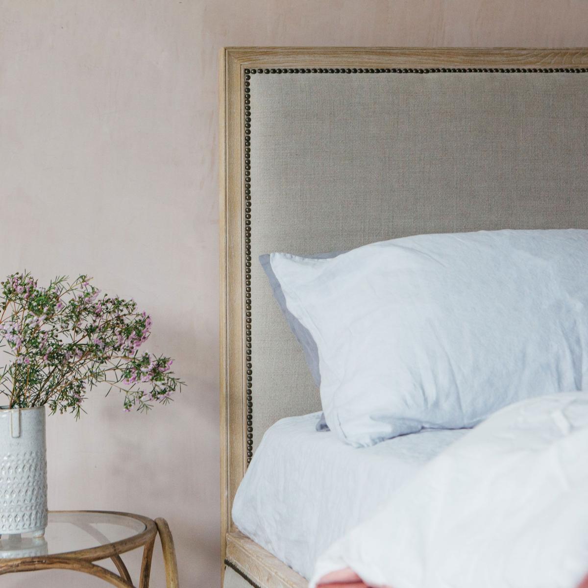 Beautifully upholstered in natural linen, the headboard of our Luna bed will create a subtle focal point in any bedroom. A low profile footboard is upholstered to match, while the simple ash wood frame features turned legs, giving this piece a refined, contemporary edge. Available in king and super king. Fabric swatches are available by contacting our. Customer Services team.