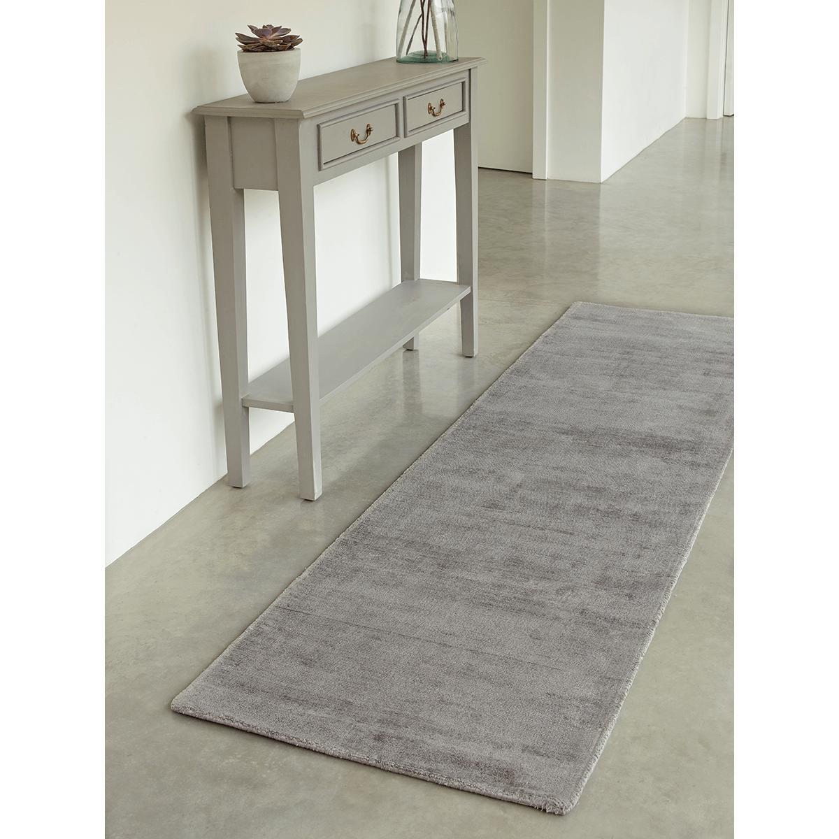 Inspired by our bestselling. Luna Silver Rugs. , our stylish runner in a sumptuous silver shade has a velvety sheen that changes colour in the light. With a supersoft finish, this short-pile runner is hardwearing and easy to clean, making it perfect for your hallway or beside your bed.