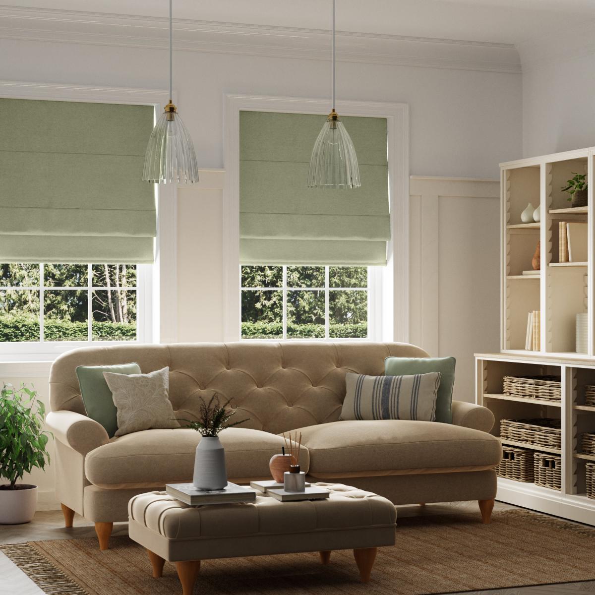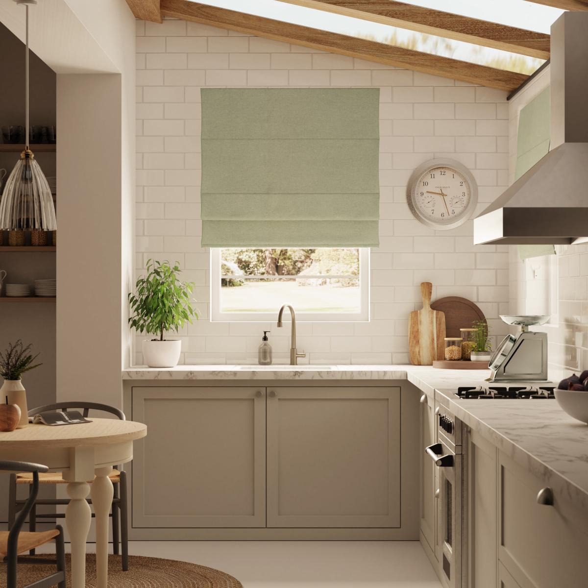 Designed with a quality blackout coating to prevent unwanted light from entering your home and improve privacy, this sage Roman blind from our Luna collection is a great way to brighten up your home interior. This blind is plain in design to easily coordinate with a wide range of decorative styles and is fashioned from brushed wool effect fabric for a beautiful texture. Available in a range of sizes, this blind is supplied with all fixings included for easy installation. At the back of your Roman Blind, the cords attach to the fabric using clips. We take the safety and well-being of children very seriously so these clips also double up as a child-safety feature. They will detach when they are put under too much strain to prevent the risk of strangulation. If they become detached accidentally during use of your blind, these can be easily clipped back into place to allow normal operation of the cords.