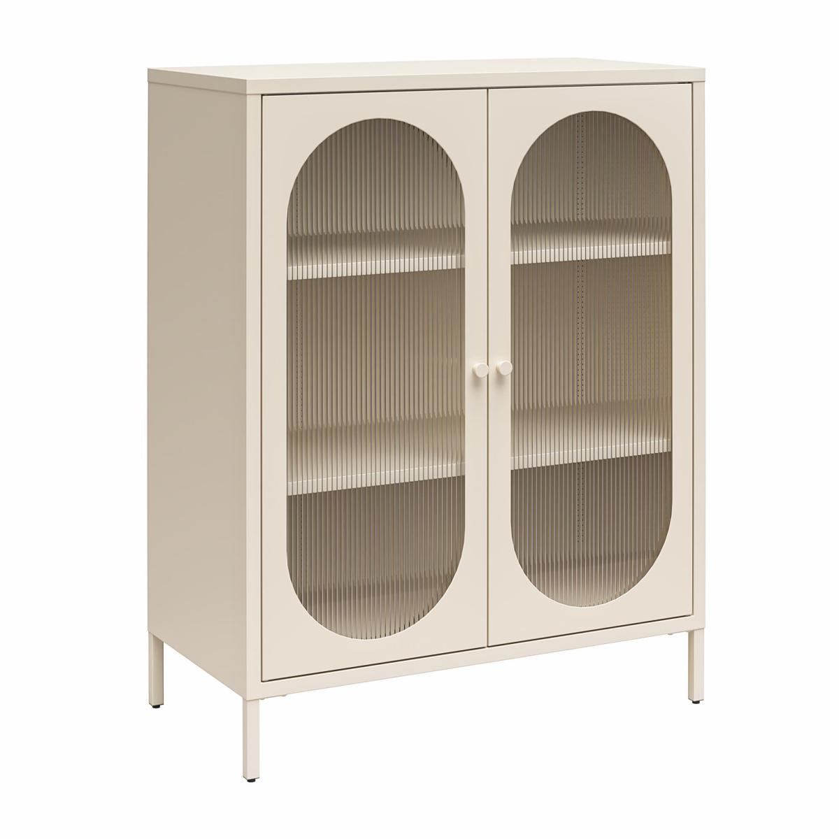* Modern design * Oval, fluted glass doors * Metal frame This sideboard offers compact yet chic storage with its fluted glass doors and resilient metal construction. Perfect for smaller spaces, this two-door cabinet features one adjustable shelf for versatile storage options. Its modern design adds an elegant touch to any room, while its practical storage solution helps keep your space organised and clutter-free.