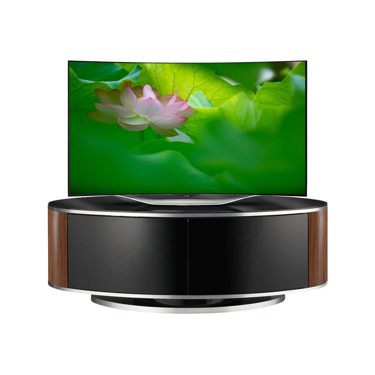 A modern television set needs a modern display unit to sit on and it doesn't get more modern than the Luna TV cabinet. Suitable for a flat screen television of up to 50", the Luna TV stand is finished with stylish trimmings. With plenty of storage space, the Luna TV stand can house all your satellite box, games console or DVD player, while the unique beam thru technology allows you to operate your AV equipment without opening the doors. The clever swivel base of the Luna TV Cabinet can rotate 60 degrees, so it's easy to get the perfect viewing angle. The Luna TV Cabinet comes complete with Cable Management to hide unsightly wires at the rear and clear and concise manual for easy Self-Assembly. The rear panel has generous ventilation to disperse any excess heat accumulated from your equipment. Dimensions: Width: 115cm x Depth: 47cm x Height: 41cm. Warranty: 1 Year Manufacturer.