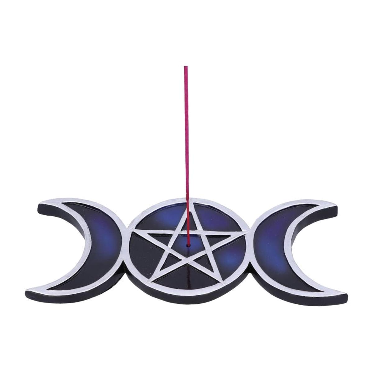 Shaped like the triple moon symbol, this piece lies on any flat surface and is made up of silver outlines of the waxing, full and waning moons. Inside the full moon there sits a pentagram with a central hole where you can place your favourite incense sticks. Representing the cycle of life, these pieces have been cast in the finest resin before being carefully hand-painted.