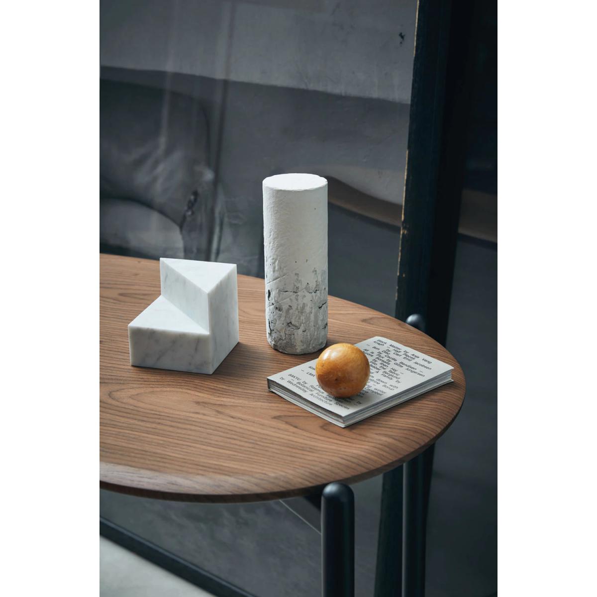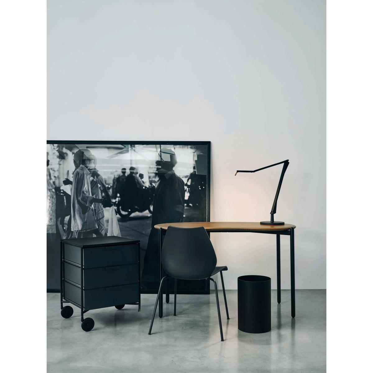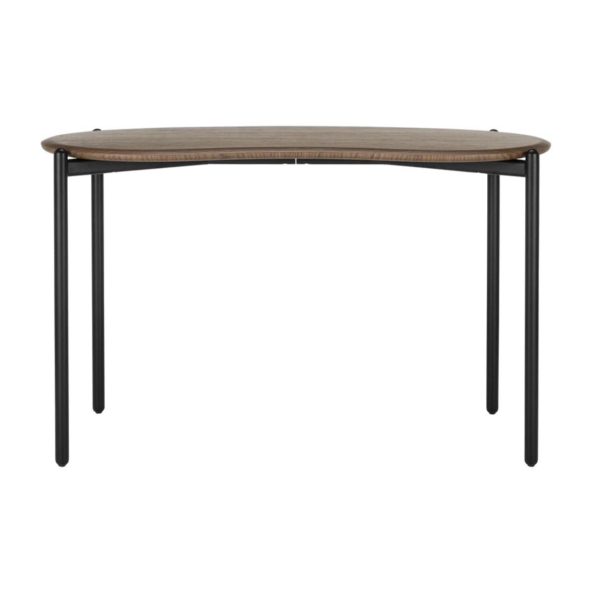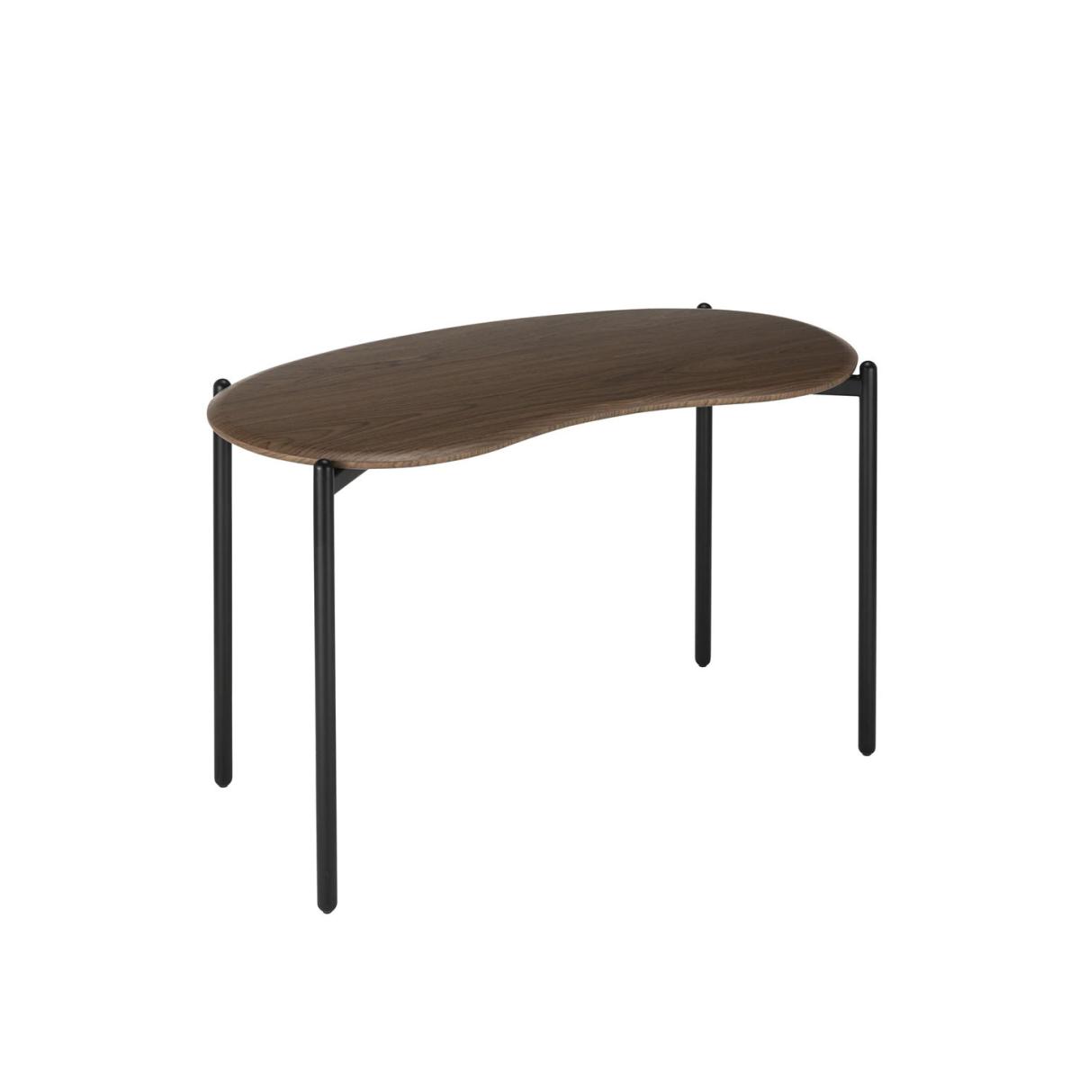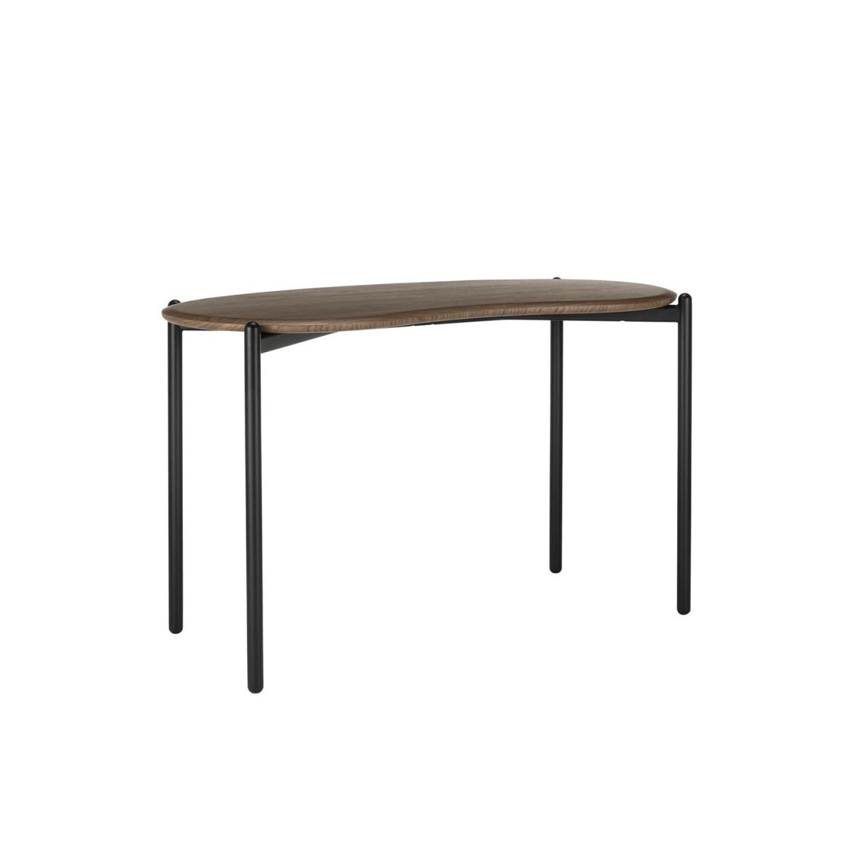 Created by famous designed Patricia Urquiola, this desk boasts an organic and essential form. Inspired by the elegance of the 1950s, the Lunat desk combined a walnut plywood tabletop with a black steel base. The curves of the tabletop refer to the distinctive shape of a bean. The softness of the lines is accentuated by the bevelled outline of the tabletop. The rounded legs positioned on the outer edge of the tabletop are elongated to weightlessly support the tabletop. They enhance the elegant and feminine silhouette of the desk and add balance to the design.