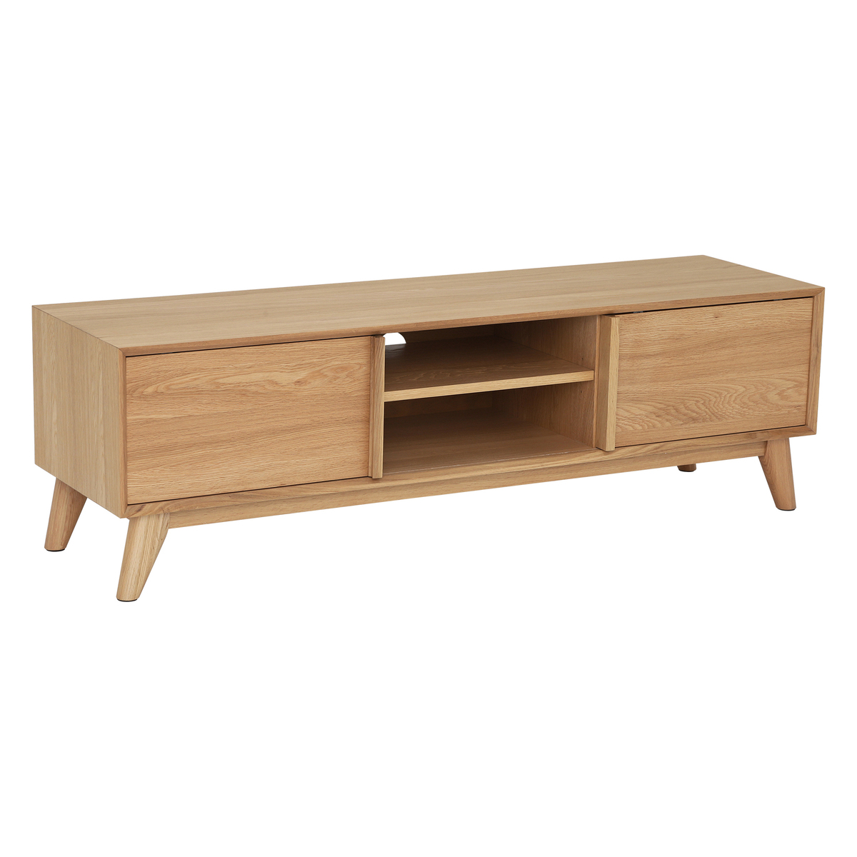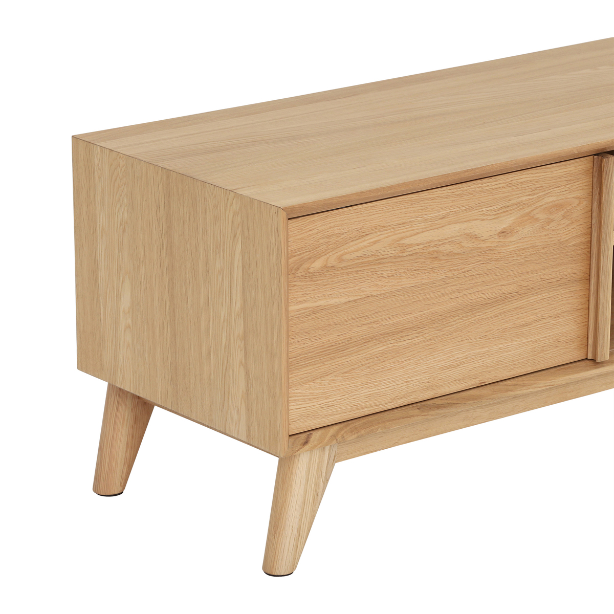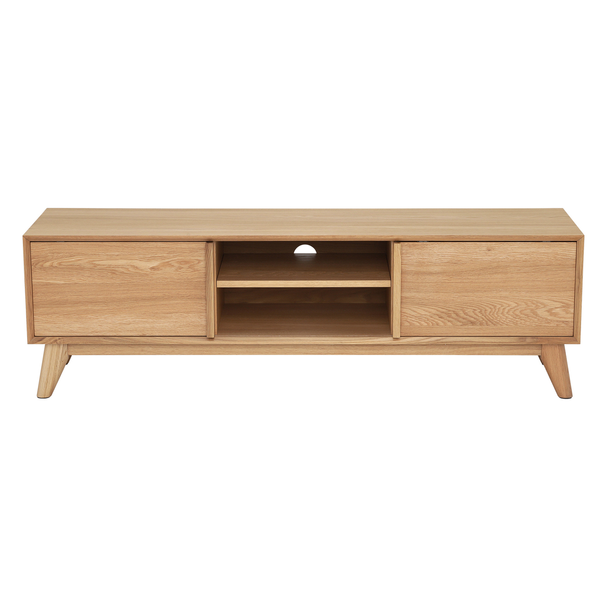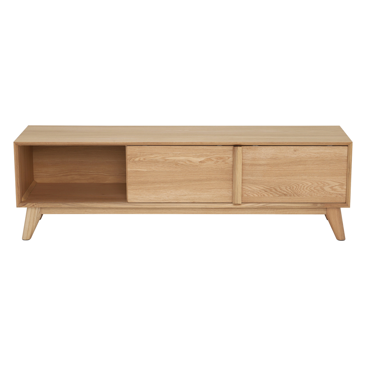 Perfect for a variety of modern looks and colour schemes, the Lund oak TV cabinet features a retro-inspired design. Its splayed legs and clean silhouette channel mid-century style, whilst a natural wood finish provides traditional charm. Built from solid oak, this TV stand is equally timeless and hardwearing.