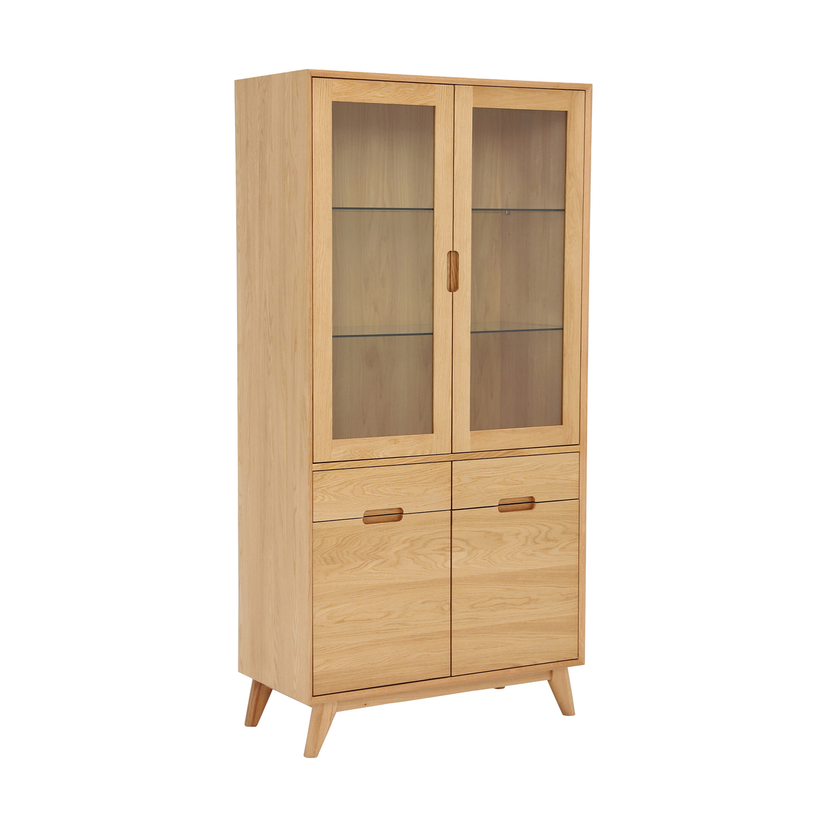 An elegant addition to your dining room, the Lund China Display Cabinet offers plenty of practical storage. Glazed doors on the top section allowing you to display your favourite decorative accessories and glass ware, with three tempered glass shelves that are adjustable to your requirements, and the bottom section features two drawers and a double door cabinet, great for hiding away any unwanted clutter. The elegant splayed feet and clean lines of the Lund range create a paired-back and modern feel.