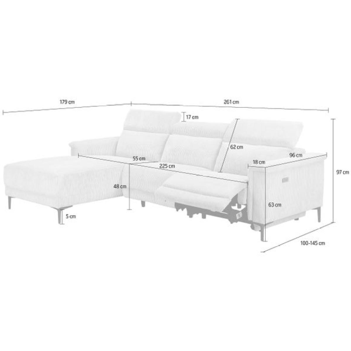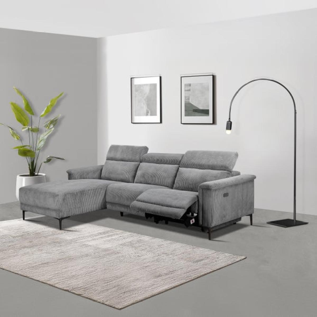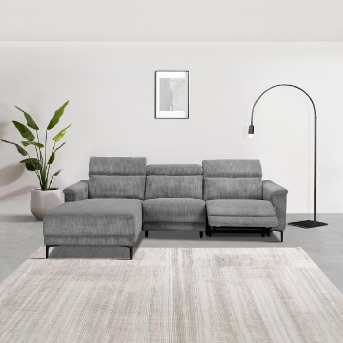 * Soft corduroy fabric * Power recliner function * Adjustable headrest * Left-hand chaise * Easy-care feet and durable design Upgrade your living space with the Lund 3 seater chaise sofa, combining modern style with ultimate comfort. Upholstered in soft corduroy, it features an electric recline function for effortless relaxation. The adjustable headrest allows you to find your perfect position, while the left-hand chaise offers extra room to stretch out. Built with elastic belt suspension for lasting support and easy-care feet for low maintenance, this sofa is as practical as it is inviting: perfect for everyday living.