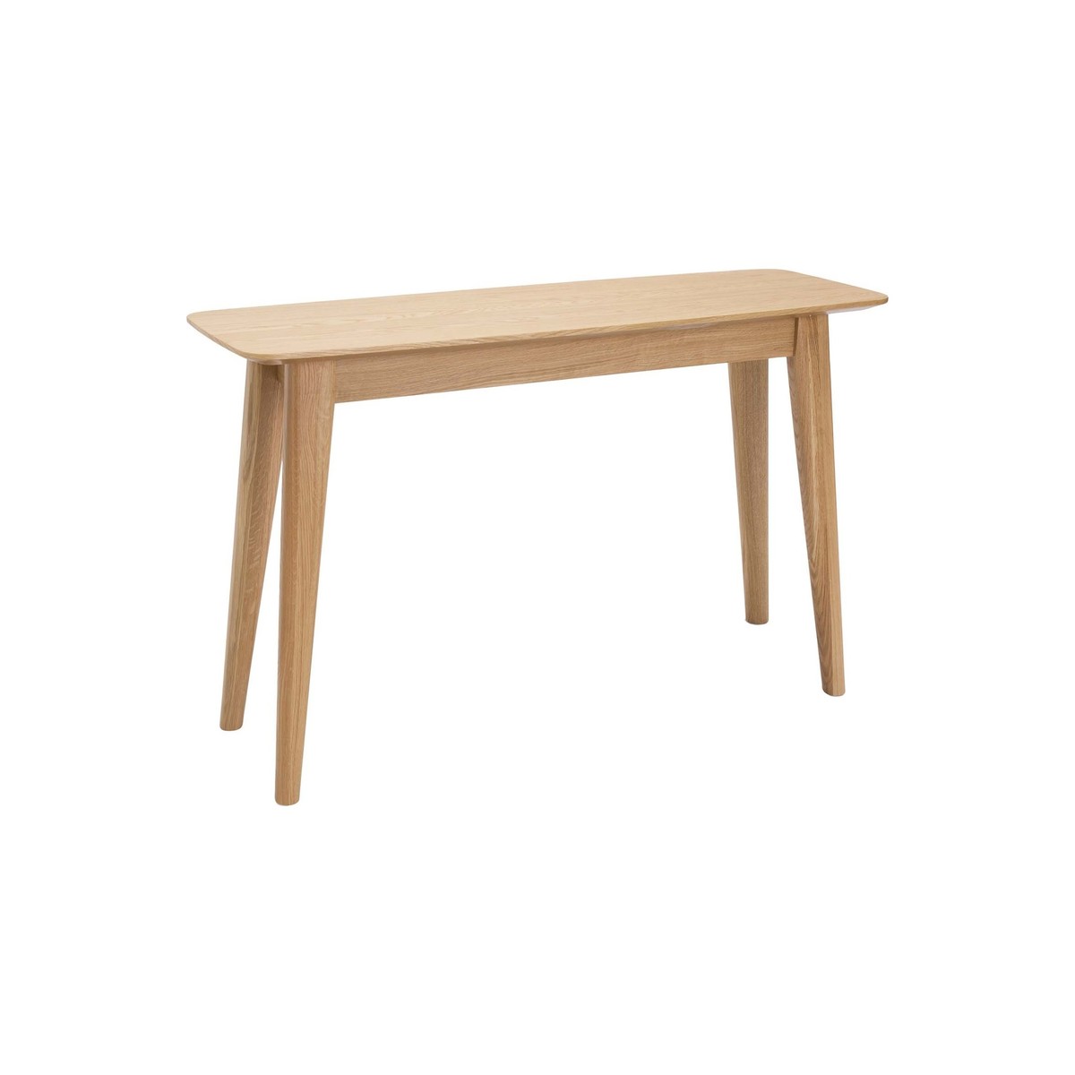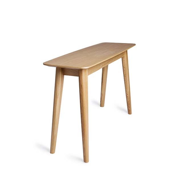 Ideal for your hall way or behind your sofa the Lund Console table is crafted from solid oak and finished with a clear lacquer enhancing the natural grains in the oak. The rounded edges and splayed legs create an elegant and simple piece perfect for a pared-back Scandinavian styled room.