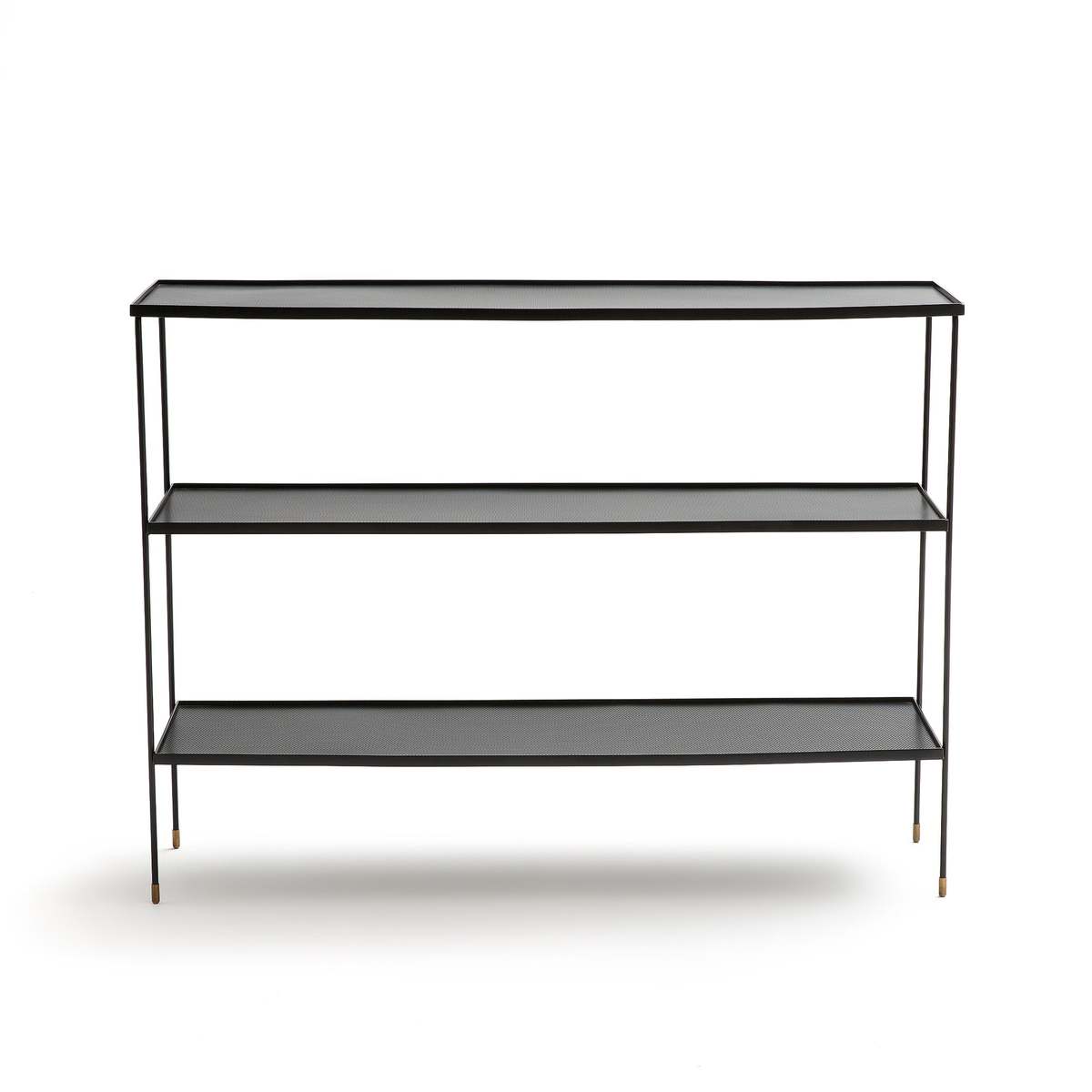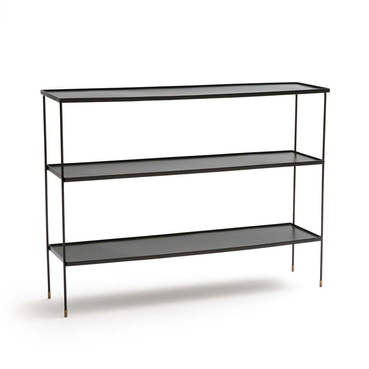 Airy, light and contemporary with three handy shelves to maximise storage, this console table is made from perforated metal. And its slender shape makes it ideal in the hallway, behind the sofa in the living room or in the bathroom.
