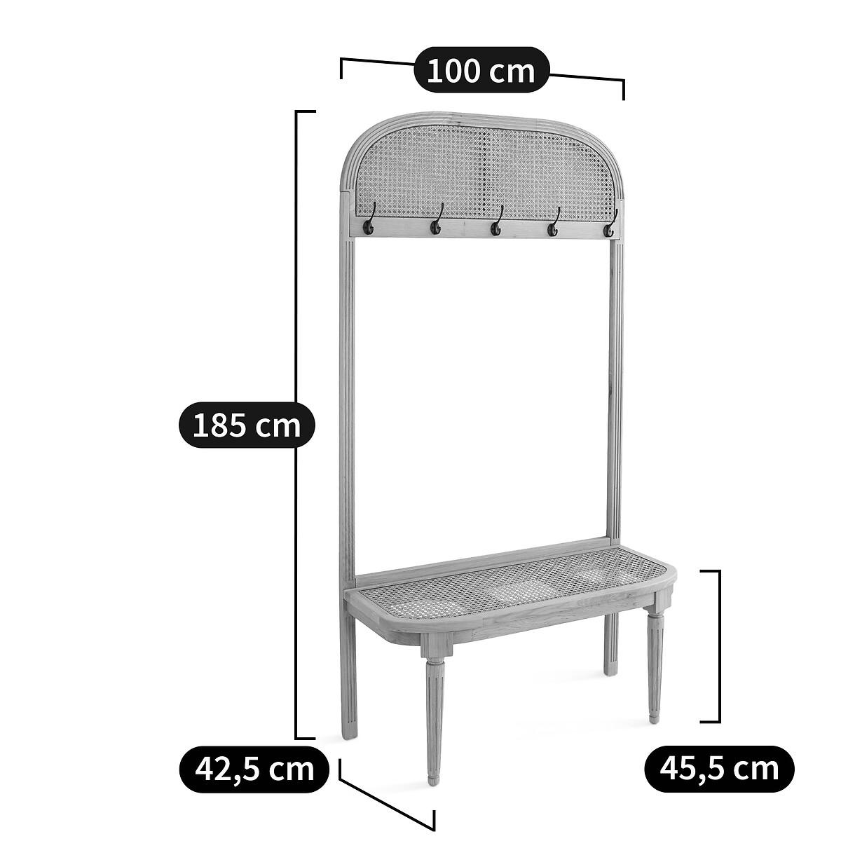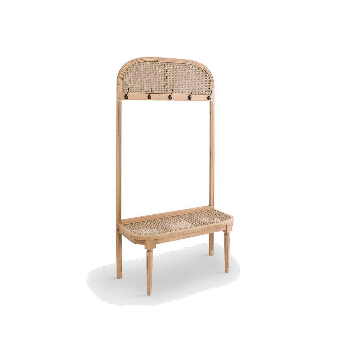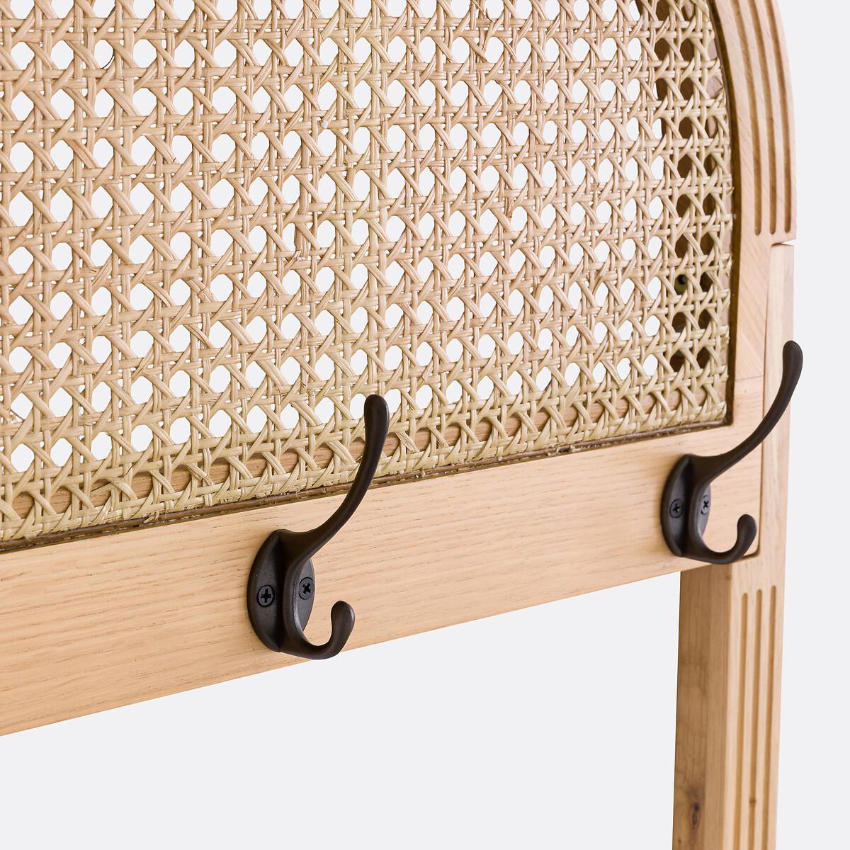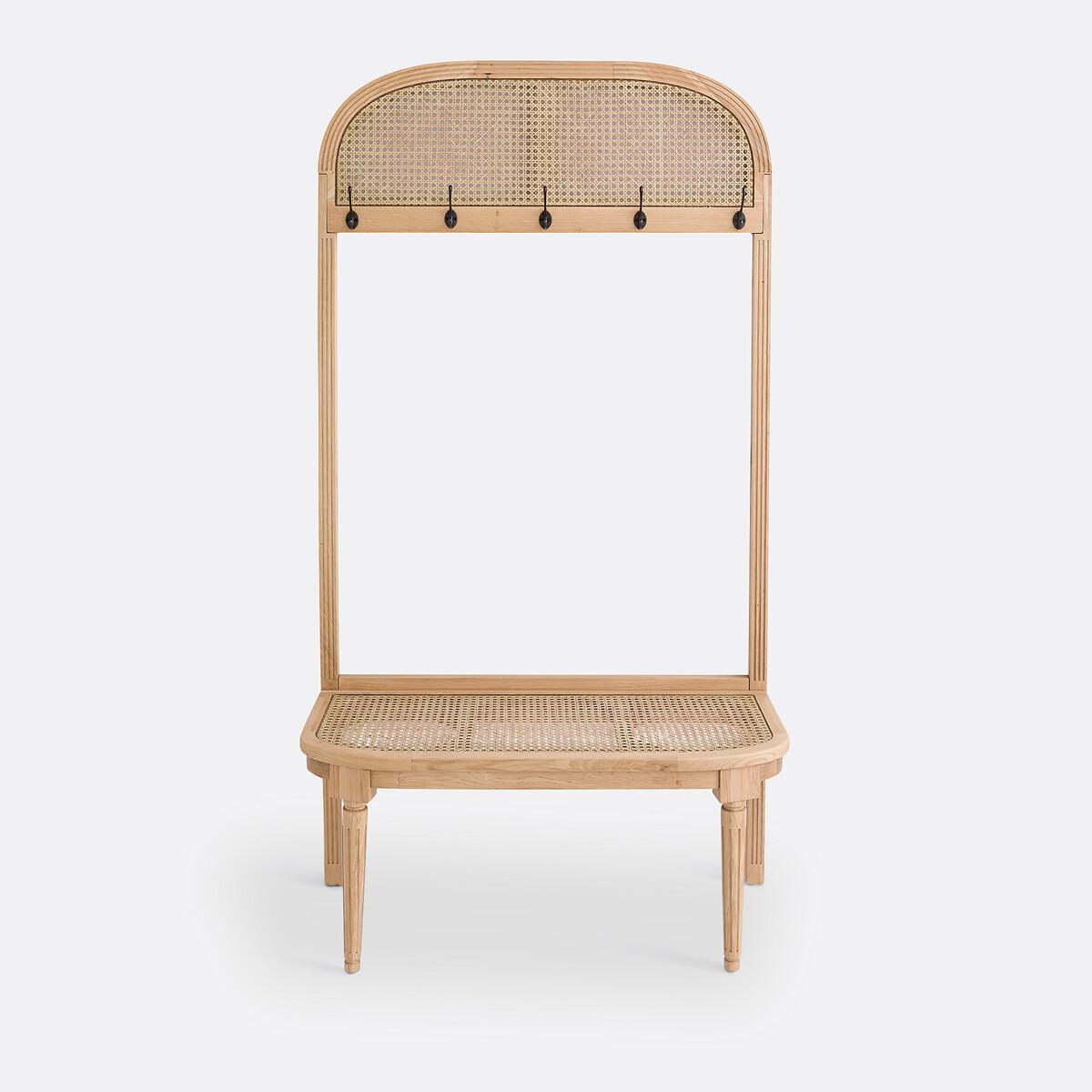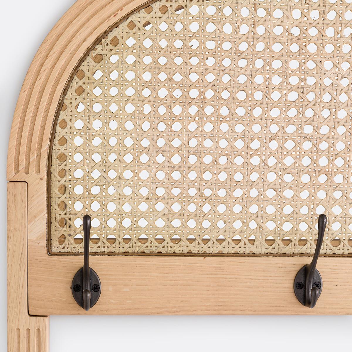 With vintage inspiration and clean lines, the Lunhaus rail combines rattan and solid oak. Five hooks and a bench make this functional piece of furniture an ideal cloakroom in an entryway. Designed by La Redoute Interiors Product Details • FSC® rattan and solid oak canework, matte effect nitrocellulose finish • Moulded feet • 5 metal hooks • Wall mounting system included, screws and dowels not provided. Dimensions • Width: 100cm • Height: 185cm • Depth: 42.5cm • Seat height: 45.5cm • Weight: 15kg • Assembly required. • WOOD FROM SUSTAINABLY MANAGED FORESTS. FSC® certified wood comes from forests that are environmentally, socially and economically well managed. Dimensions and weight of parcel2 parcels • L108.8 x H15.5 x D51cm. 14kg. • L168.8 x H14 x D17cm. 6kg.