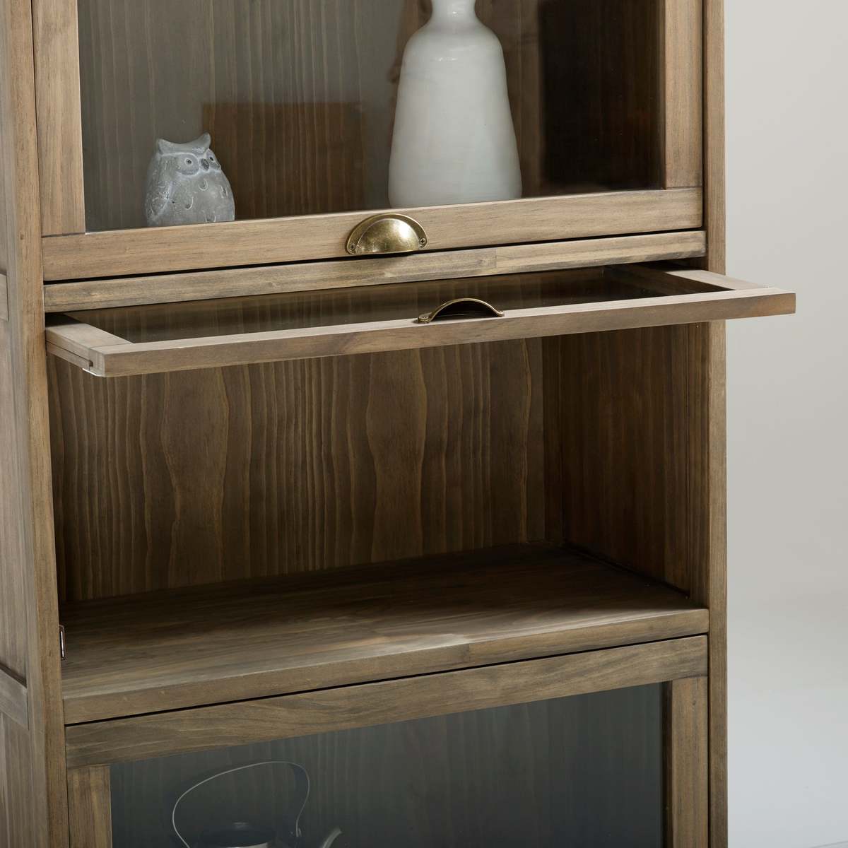 I love how this little display cabinet combines practicality with natural warmth, making it versatile in a range of interiors, from coastal to rustic schemes. Its five-door design adds a modern touch while offering ample storage and display space, perfect for showcasing ceramics, books, or decorative pieces. To style it effectively, consider grouping collectibles or vases in complementary colours for a tidy look, or add soft lighting inside to highlight your favourite items. It works well in living rooms, kitchens, or even a hallway to add character without overwhelming the space. Keep accessories simple and colours muted for a clean, cohesive aesthetic that lets the cabinet’s natural wood finish shine.