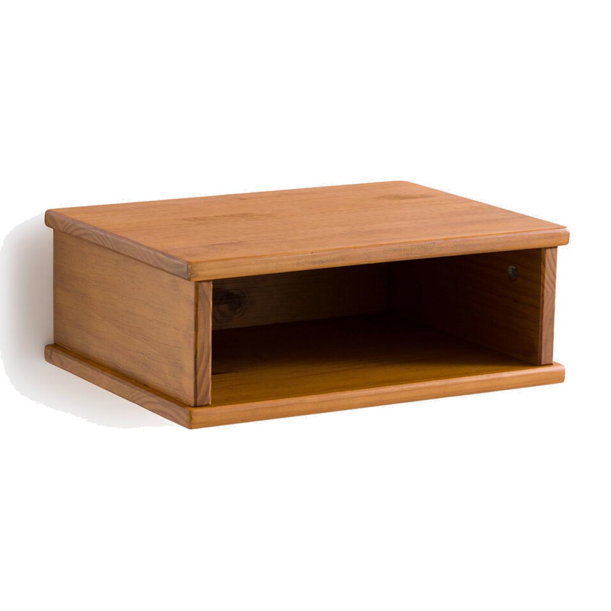 Lunja solid pine suspended bedside table. Back to basics with this brushed solid pine bedside table to combine with the bed and matching drawer. Product Details • Solid brushed pine • Rustic-style finish • Fixes to the wallDimensions. Total: • Width: 40cm • Height: 15cm • Depth: 30cm. Usable dimensions: • L34 x H11 x D28cm • WOOD FROM SUSTAINABLY MANAGED FORESTS. FSC® certified wood comes from forests that are environmentally, socially and economically well managed. Parcel Dimensions:1 parcel • L47.8 x H6.8 x D39.4cm • 4.5kg