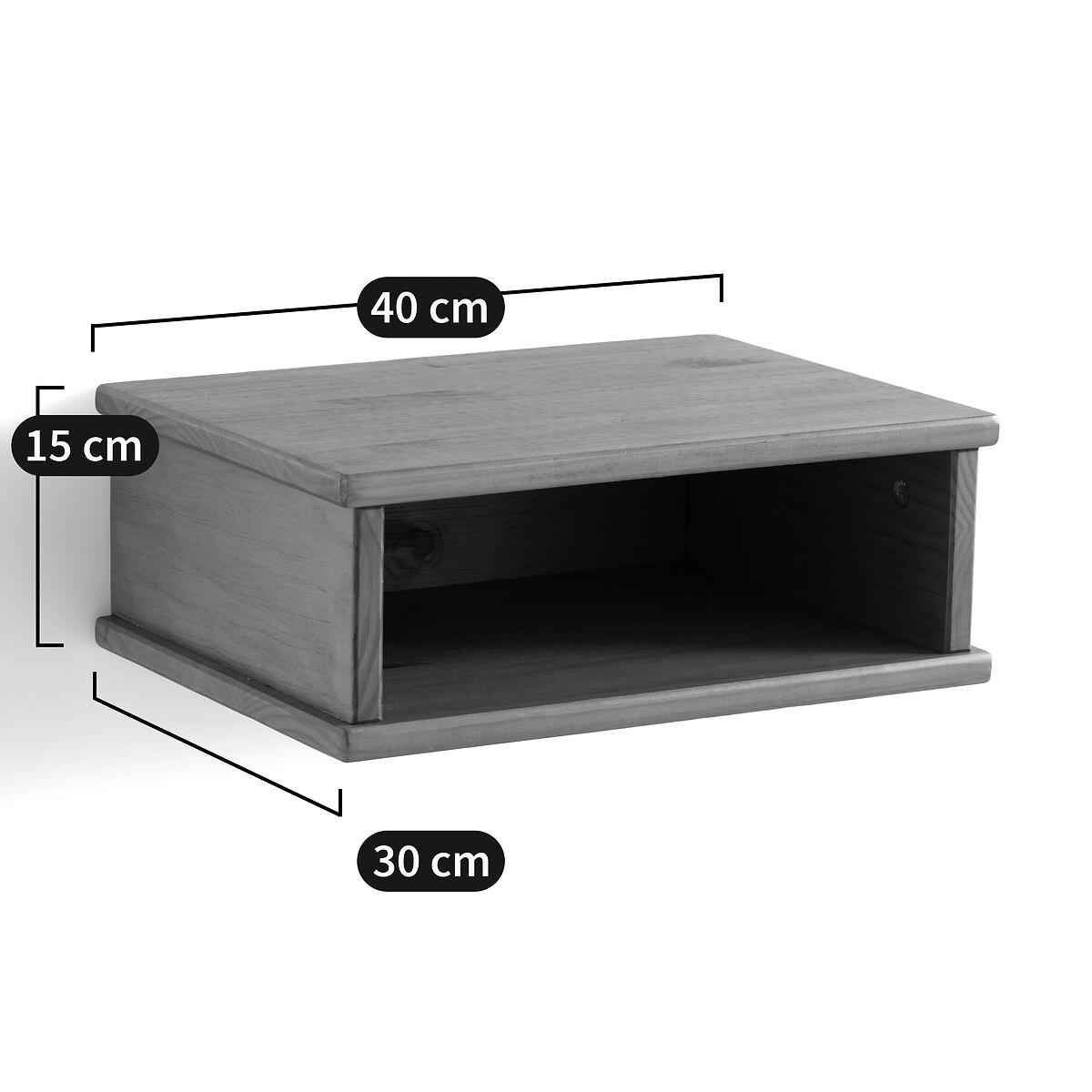 Lunja solid pine suspended bedside table. Back to basics with this brushed solid pine bedside table to combine with the bed and matching drawer. Product Details • Solid brushed pine • Rustic-style finish • Fixes to the wallDimensions. Total: • Width: 40cm • Height: 15cm • Depth: 30cm. Usable dimensions: • L34 x H11 x D28cm • WOOD FROM SUSTAINABLY MANAGED FORESTS. FSC® certified wood comes from forests that are environmentally, socially and economically well managed. Parcel Dimensions:1 parcel • L47.8 x H6.8 x D39.4cm • 4.5kg