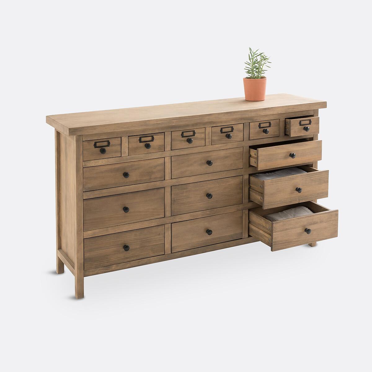 Find a place for everything with this generous cabinet from our Lunja range. Inspired by antique furniture, this solid, 15-drawer unit will be hugely practical in the living room. Robust and roomy, it's ideal for storing table linen, dishes and more
