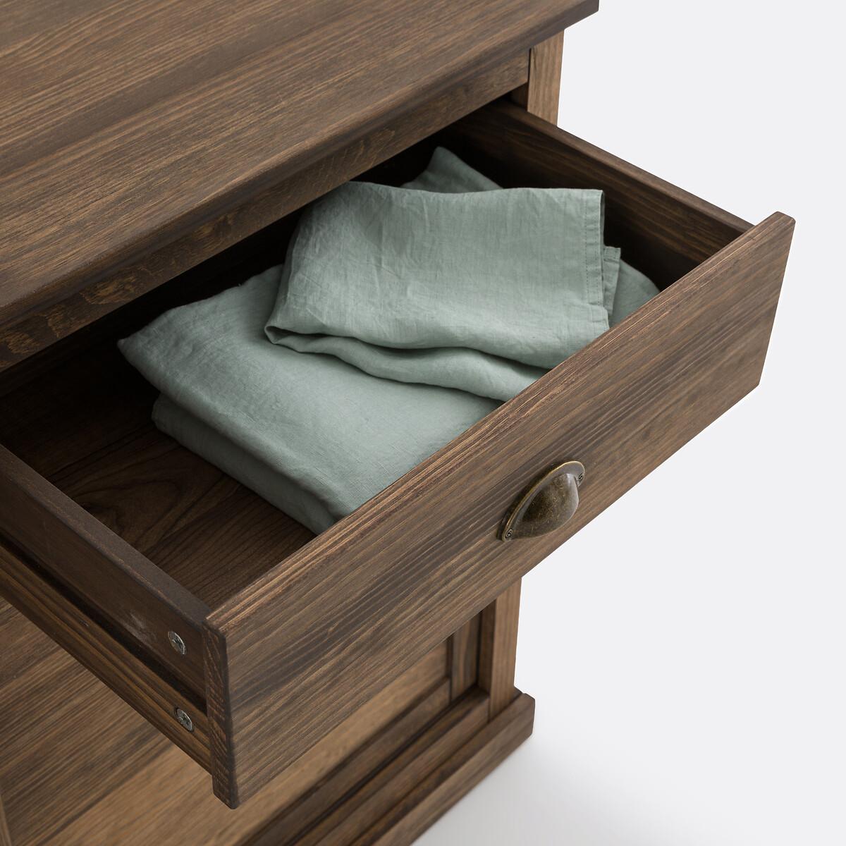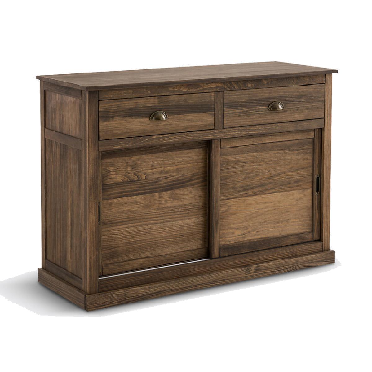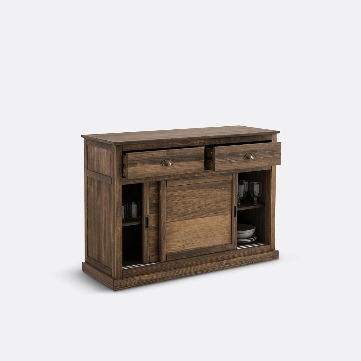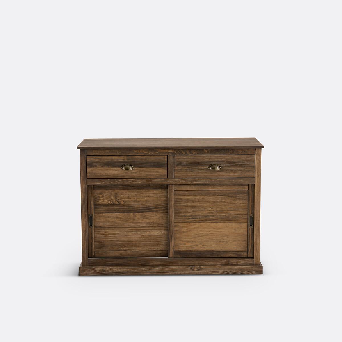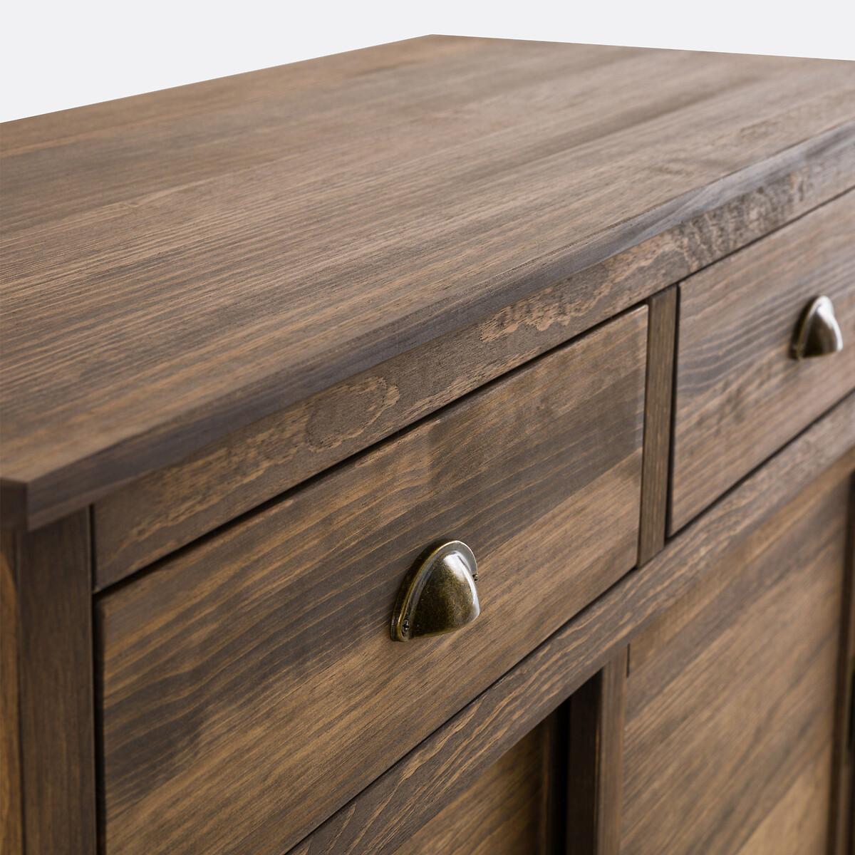 Inspired by the furniture of yesteryear, the Lunja range offers solid pine furniture with perfect proportions. Their elegant and authentic design will bring character to each of your rooms. A signature design by La Redoute Interieurs. Product Details • In solid FSC® certified pine with delicate teak-style shades, waxed finish • Aged iron handles • MDF base • 2 sliding doors opening onto 4 compartments with 2 removable shelves adjustable in height to 3 positions • 2 drawers • Simple base, 6cm highDimensions. Overall • Length: 120cm • Height: 85cm • Depth: 45cm • Weight: 31.8kg. Usable space • Drawers : L47.8 x H10.5 x D33.2cm • Compartments : L108.4 x H24 x D35.5cm • Assembly required. • WOOD FROM SUSTAINABLY MANAGED FORESTS. FSC® certified wood comes from forests that are environmentally, socially and economically well managed. Parcel Dimensions1 parcel • L130 x H19 x D61.8cm. 36.2kg