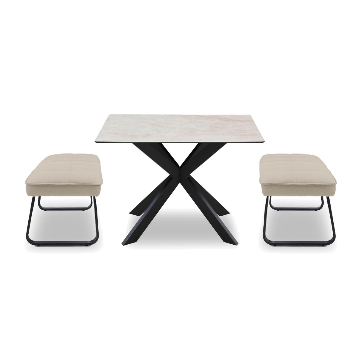 I love this set because of its clean, modern look and versatile design, making it suitable for a range of interiors from contemporary to minimalist. The fixed dining table paired with the low benches creates a relaxed, informal vibe that’s perfect for everyday family meals or casual get-togethers. To style it effectively, consider adding a runner or a statement centrepiece on the table to inject colour or texture, while the neutral tones of the benches make them easy to adapt with cushions or throws for added comfort and personality. It works particularly well in open-plan kitchens or dining areas where a streamlined, clutter-free aesthetic is desired. Practical styling tips include pairing it with plenty of natural light and complementing with matching or contrasting chairs or accessories to enhance its visual appeal.