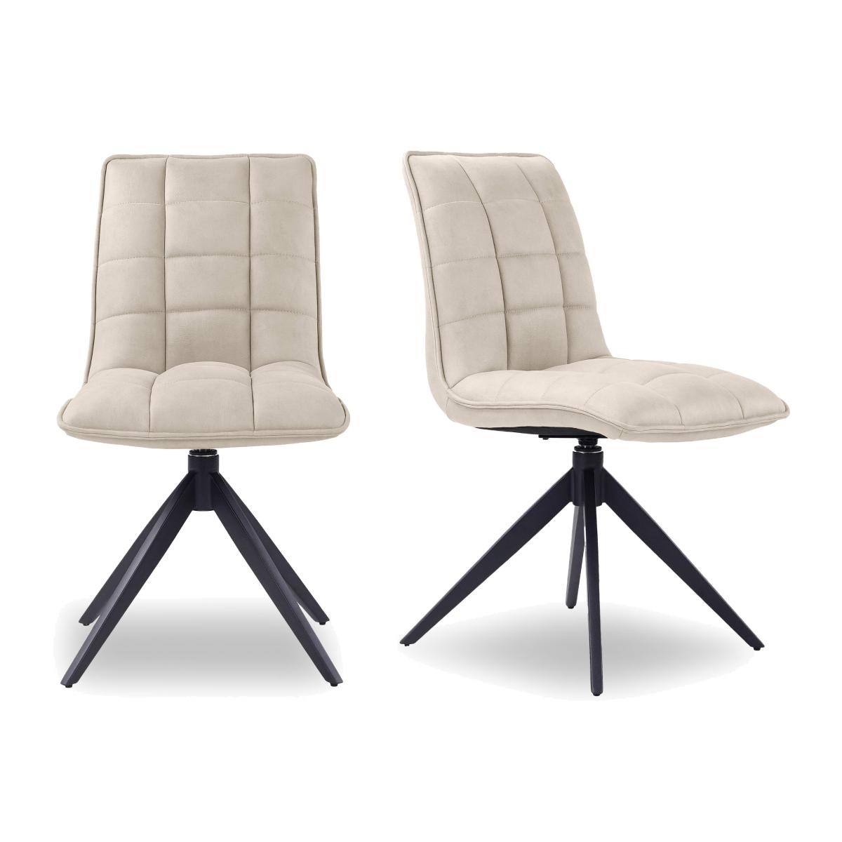 I love this pairing of swivel dining chairs for their modern yet versatile look. The neutral upholstery makes them adaptable to a variety of colour schemes and styles, from contemporary to Scandi interiors. They work particularly well in open-plan or minimalist spaces where clean lines and functional pieces are key. For styling tips, try pairing these chairs with a sleek glass or wooden table to emphasise their contemporary vibe, and add cushions or throws in textured fabrics or subtle colours for added comfort and visual interest. Their swivel feature also brings practicality, making them perfect for casual dining or multi-purpose rooms where flexibility and ease of movement are priorities.