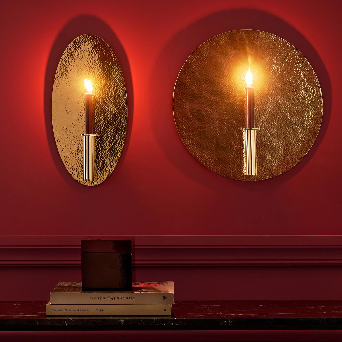Lunou Oval Wall Sconce with Candle Holder/Bud Vase in Brass