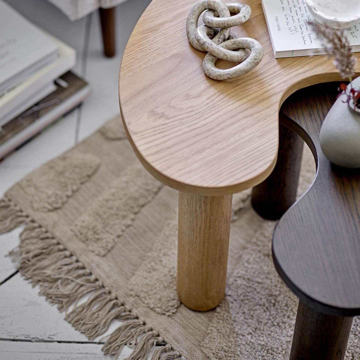 This side table brings a vintage vibe, combining organic lines with an authentic material. Made from rubber wood, it offers a soft, rounded form. Simple and wonderfully warming, this little table comes in two sizes with different heights and different colours of wood: Have fun combining them! All curves, they complement and combine with each other nicely.