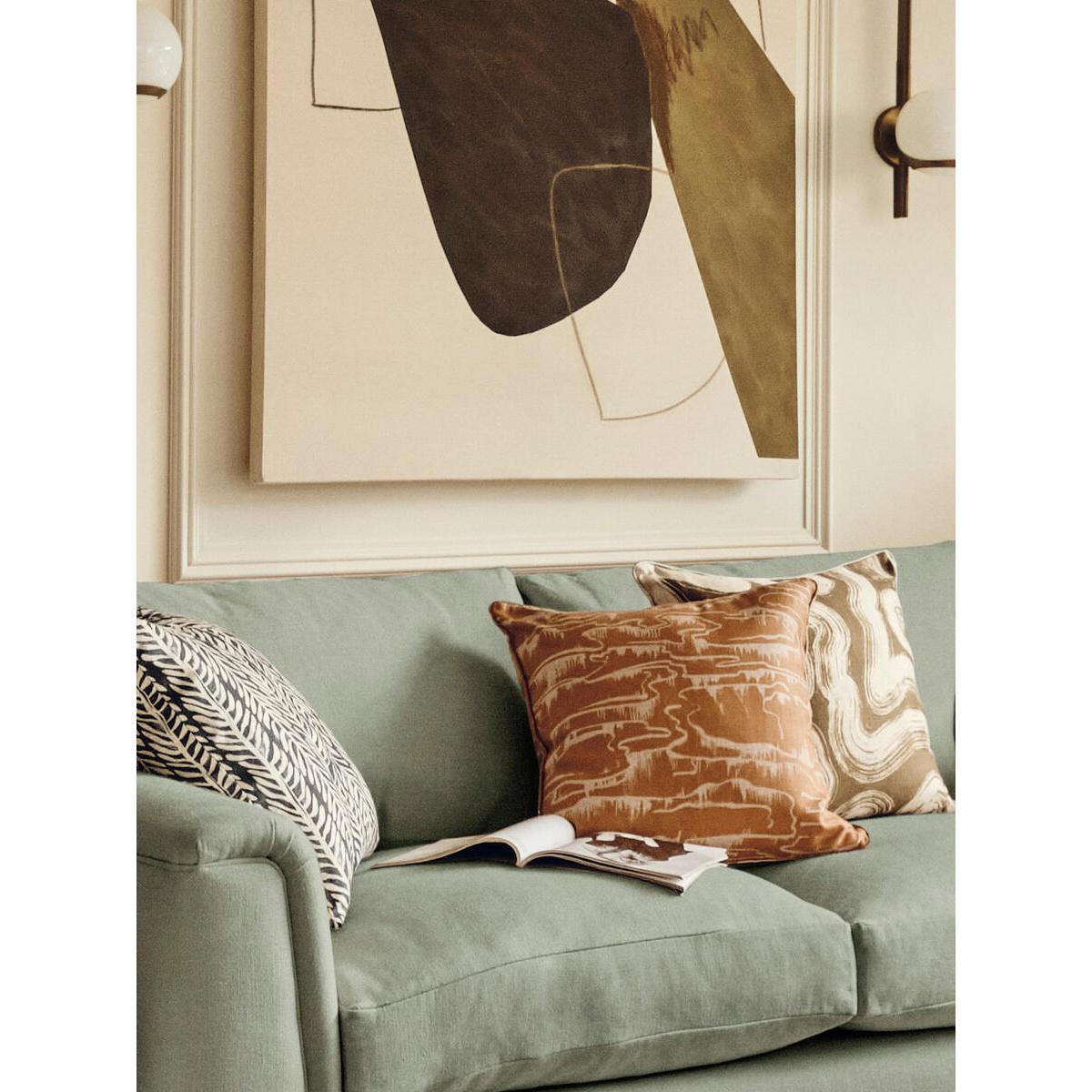 The Lurgashall square cushion is crafted from textured linen and references the patterned cushions in 180 House. Designed by our in-house team, it features an abstract motif inspired by 19th-century Parisian linocuts. Use it to add intrigue and colour to your seating spot. Linen square cushion Linocut-style pattern Inspired by a Parisian 19th-century textile sample Printed and made in the UK Designed in-house Inspired by 180 House
