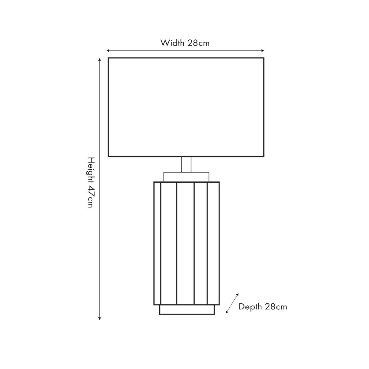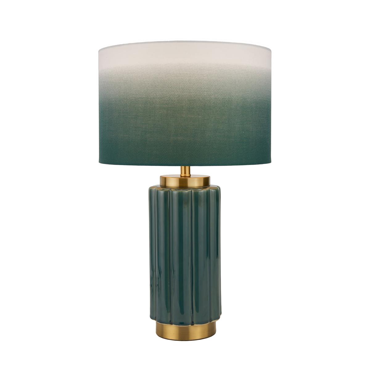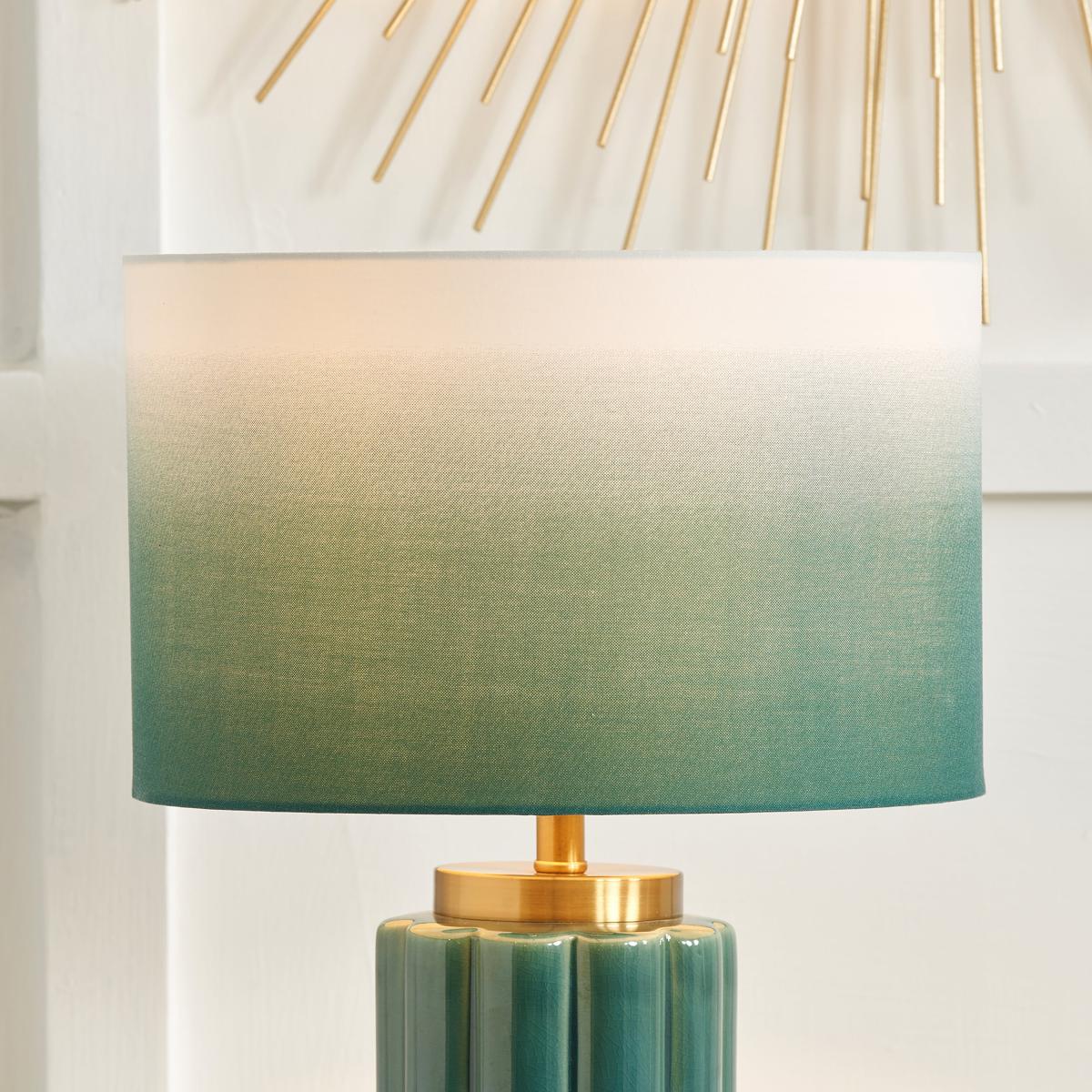 * Bulb required: 1 x ES (Edison Screw) - E27* Bulb(s) not included* Available in a selection of colours* Self lined linen shade* 2.5m cable with an In Line switch The Lushan Scalloped Ceramic Table Lamp is an elegant cylindrical, scalloped lamp in a statement brushed gold. The striking base showcases a stylish ombre, self-lined shade, adding a touch of colour to any interior and offering a sophisticated focal point.