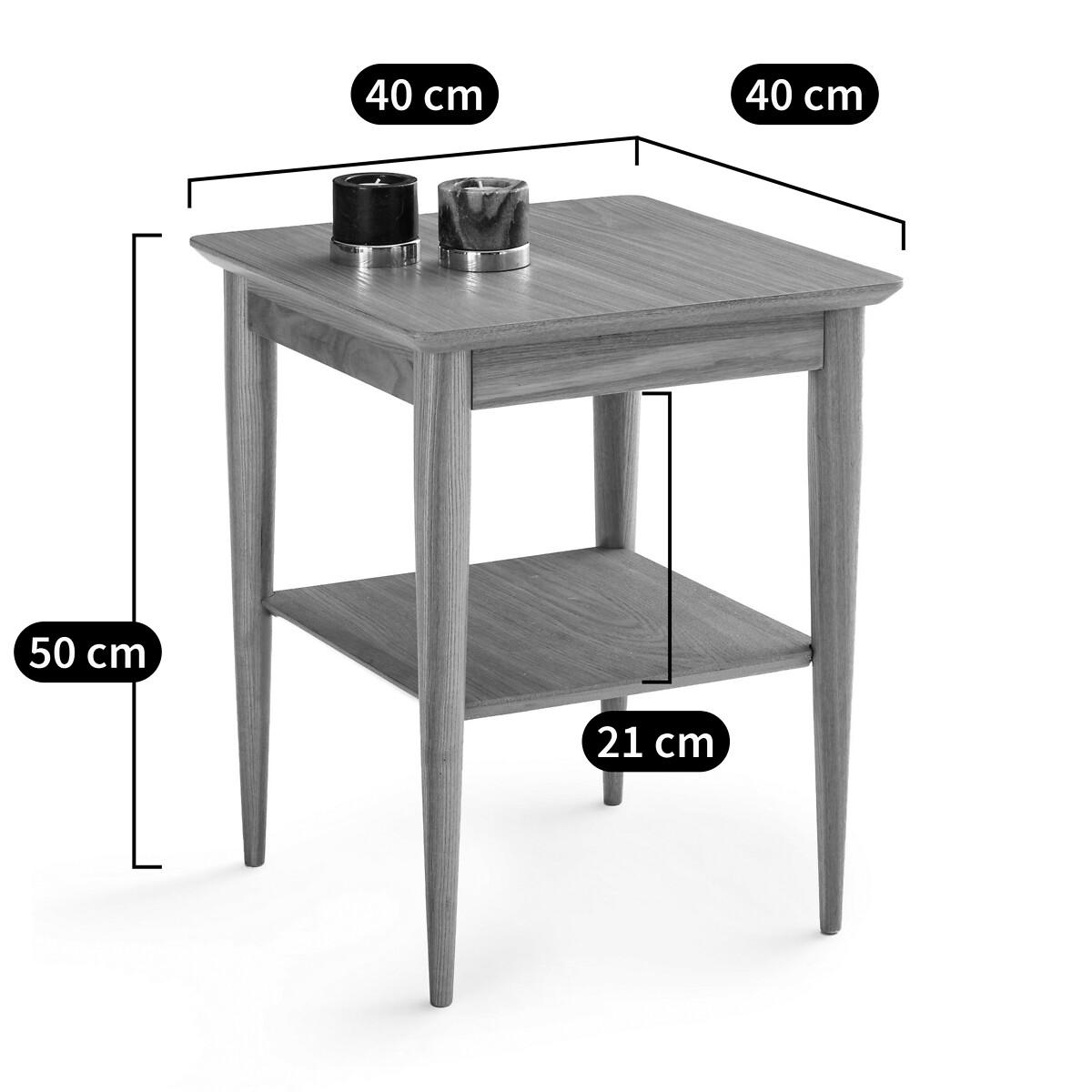 Our Lussan two-tier side table will be an asset to any living room. Its contemporary and tapered line allows it to fit into all living room styles. Product Details • Two tier. • Tapered legs. • Felt pads on feet. • Solid ash legs and ash veneered tops, nitrocellulose varnish finish. • Double bevelled top edges and rounded corners. Dimensions • L40 x H50 x D40cm. Usable dimensions: • Height between levels: 21cm. Delivery:Assembly required. Available for home delivery. • WOOD FROM SUSTAINABLY MANAGED FORESTS. FSC® certified wood comes from forests that are environmentally, socially and economically well managed. Parcel Dimensions: • 60 x 17 x 54cm. • 7.9kg.