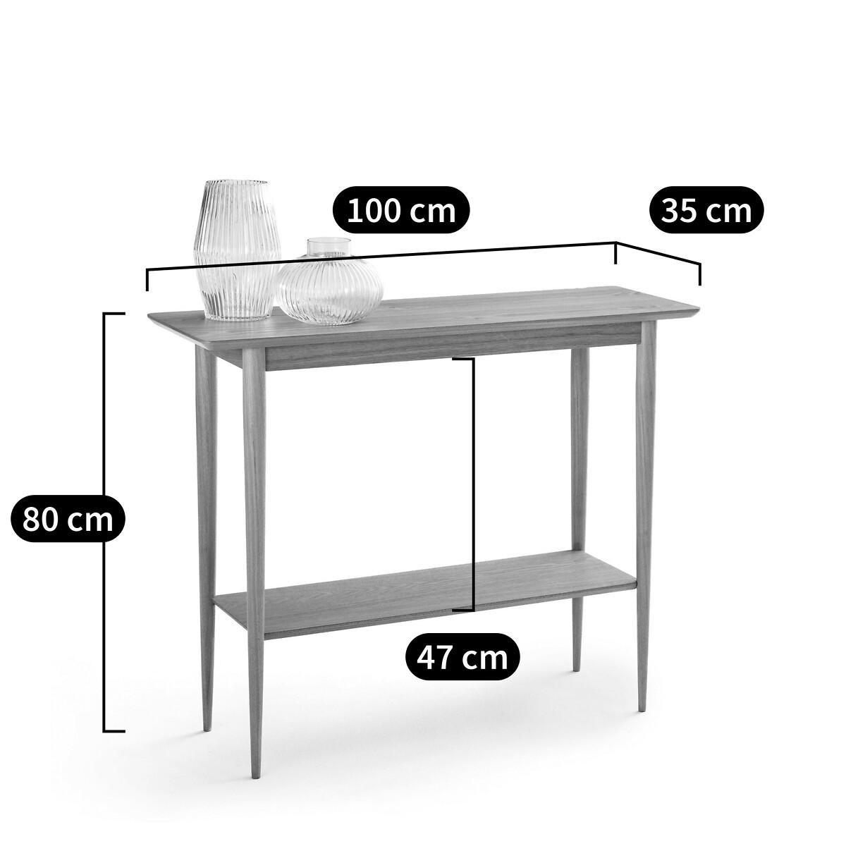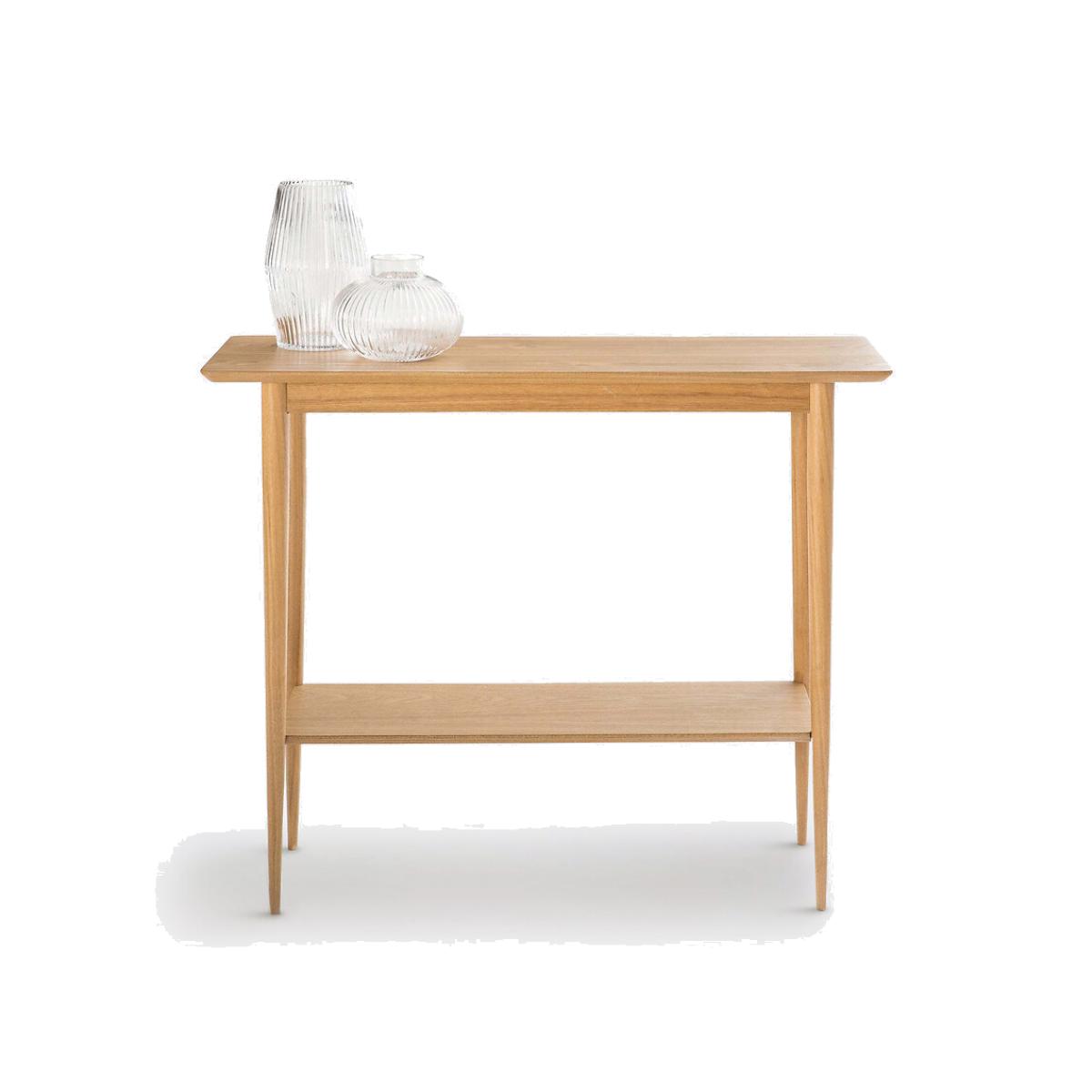 The Lussan ash console table. Its contemporary and tapered line allows it to fit into a living room, a corridor, an entrance whatever the style. Product Details • Two tier. • Tapered legs. • Felt pads on feet. • Solid ash legs and ash veneered tops, nitrocellulose varnish finish • Double bevelled top edges and rounded corners. Dimensions. Total: • L100 x H80 x D35cm. Usable dimensions: • Height between shelves: 47cm. Delivery:Assembly required. Available for home delivery. • WOOD FROM SUSTAINABLY MANAGED FORESTS. FSC® certified wood comes from forests that are environmentally, socially and economically well managed. Parcel dimensions and weight: • 111 x 48 x 17cm. • 14kg.