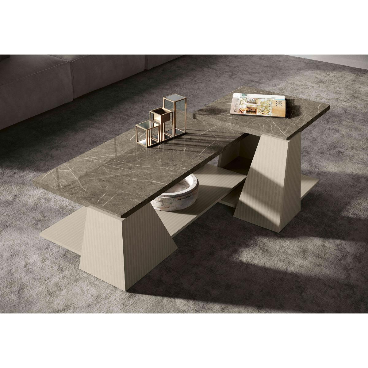 Modern glam style. Flawless finishes. Creative design. And exclusive to Furniture Village. Our Lusso collection offers distinctive and beautifully crafted furniture for living rooms and dining rooms that will elevate the look of your home for years to come. The collection includes extending dining tables, dining sets and storage furniture for both living and dining spaces. Pieces feature beautiful high-gloss marble-patterned lacquered surfaces with contrasting contemporary textured wood for the dining tables’ pedestal bases and the frames and doors of storage pieces. The Lusso range is designed and made in Italy and is only available at Furniture Village. Practical storage and modern glam style – this unique coffee table has a marble-effect high-gloss top with contrasting grooved wood corners. Made in Italy. Why you'll love it Stunning modern glam style, direct from Italy to Furniture Village. This beautiful storage coffee table has an elegant marble-effect top. Its perfectly smooth high-gloss finish is the result of a precise four-layer lacquering process. Wood corner panels have a grooved surface with a sophisticated matt finish. Striking design allows for partially closed storage plus an extra shelf. Made in Italy and only at Furniture Village. This coffee table is part of the Lusso range. What you need to know Please note that the lacquered finish may show surface scratches under certain lighting. While durable, this table’s finish is not heat resistant or heatproof. Do not use abrasive cleaning products. Use coasters and placemats at all times. Browse the complete Lusso range for extraordinary living and dining room furniture.
