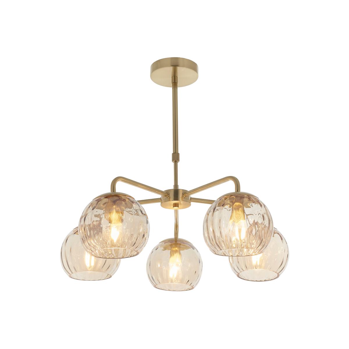 Champagne lustre glass meets modern brushed brass plating in a combination of modern classic styling. This adjustable drop ceiling light is the perfect addition to your modern home. Add a touch of style to your interior with a matching wall light, table and floor lamp. Ideal when paired with up to date LED filament lamps. H47 X W55CM.. This product will be dispatched by one of our trusted suppliers. You’ll be contacted by their selected courier about your delivery.