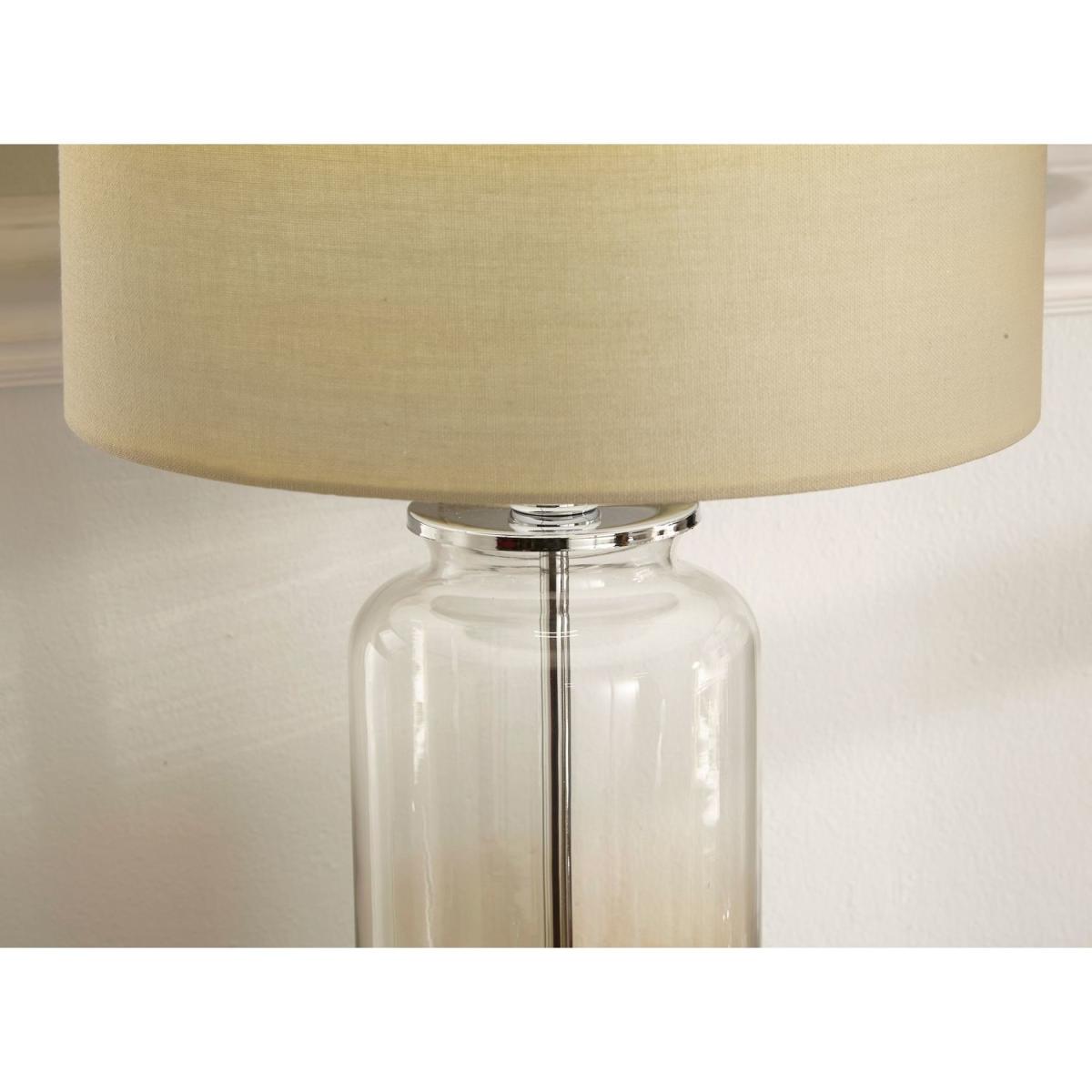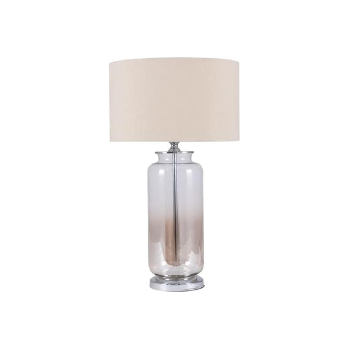 Dimensions H52cm x W30cm x D30cm. This beautifully stylish glass table lamp features an ombre finish from lustre to clear. For balance and a true complement match with a pale champagne cylinder shade. Features. Stunning ombre glass. Complimenting pale champagne shade. Contemporary piece Minimalistic design makes it easy to style in any room Assembly not required..