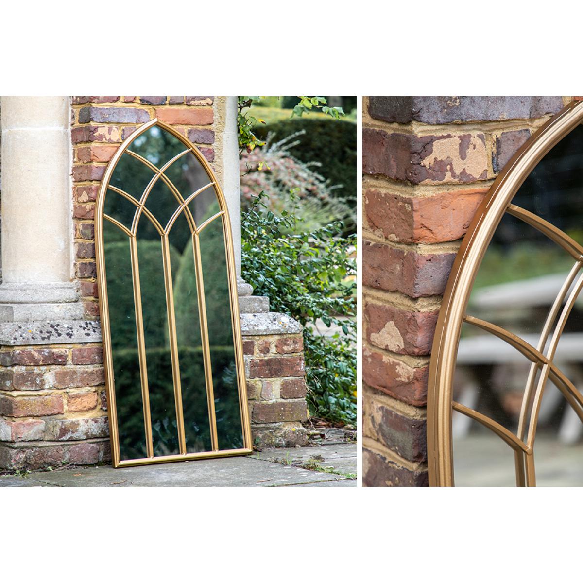 Add a luxe touch to your garden. Gold framed and richly shaped this mirror will add lustrous light and shine to even the shadiest corners.