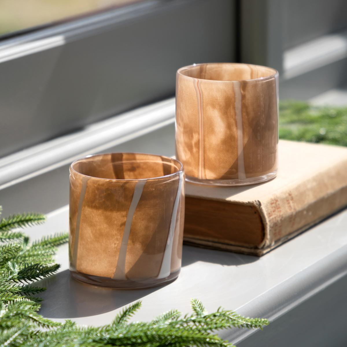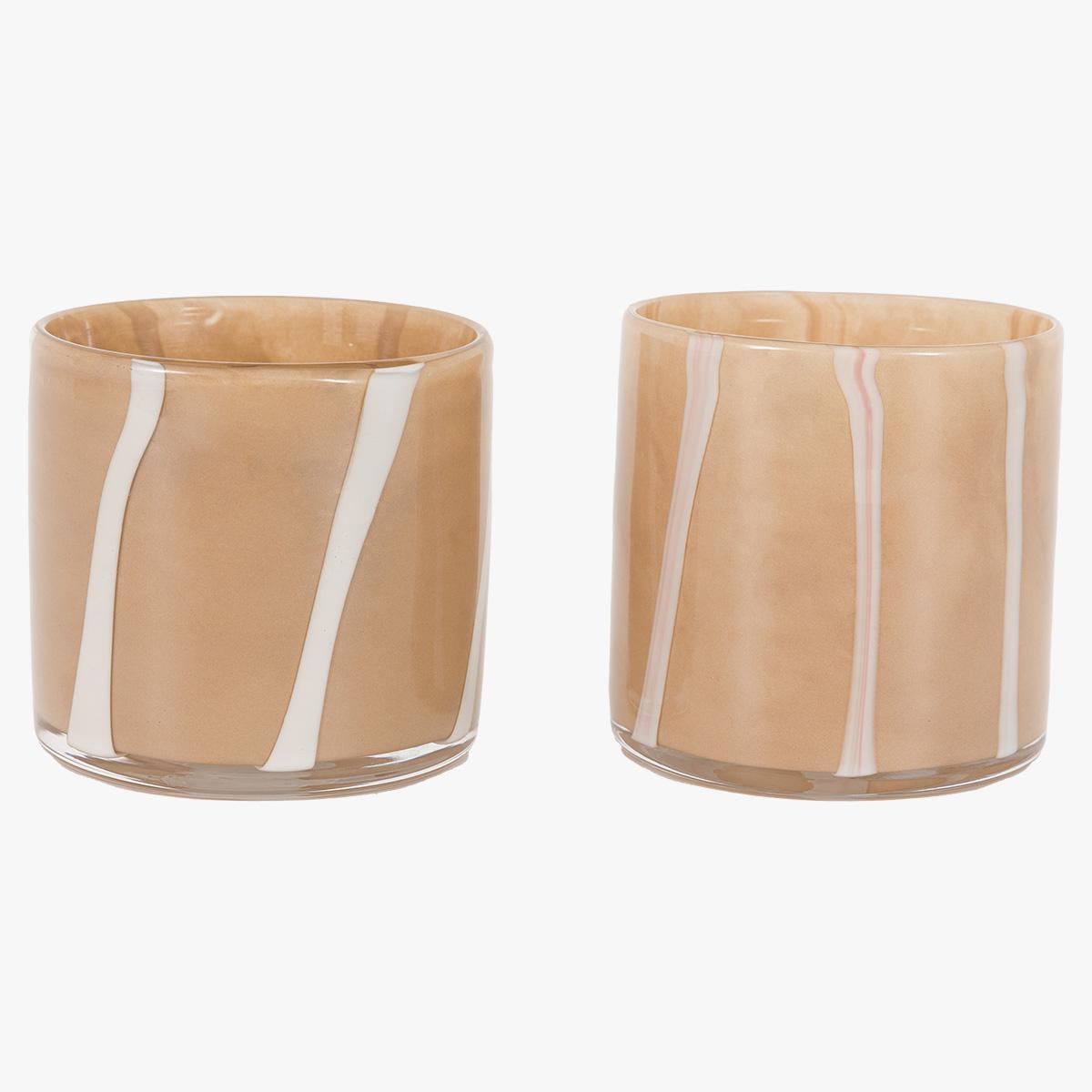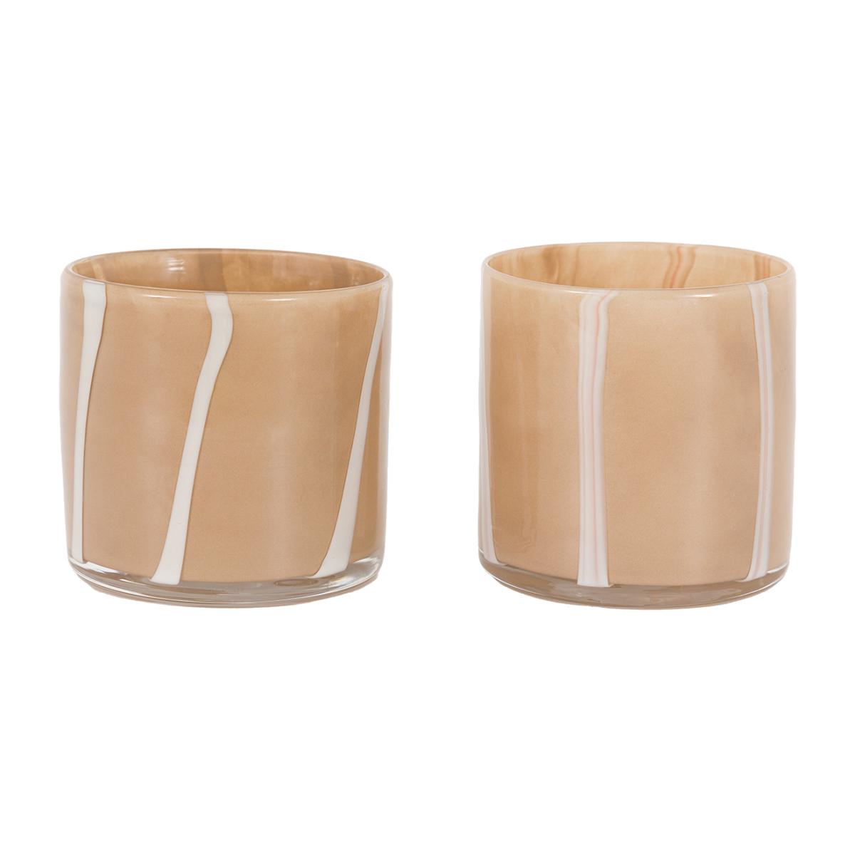 Lustre Stripe Tealight Holder in Beige and Cream, Set of 2
