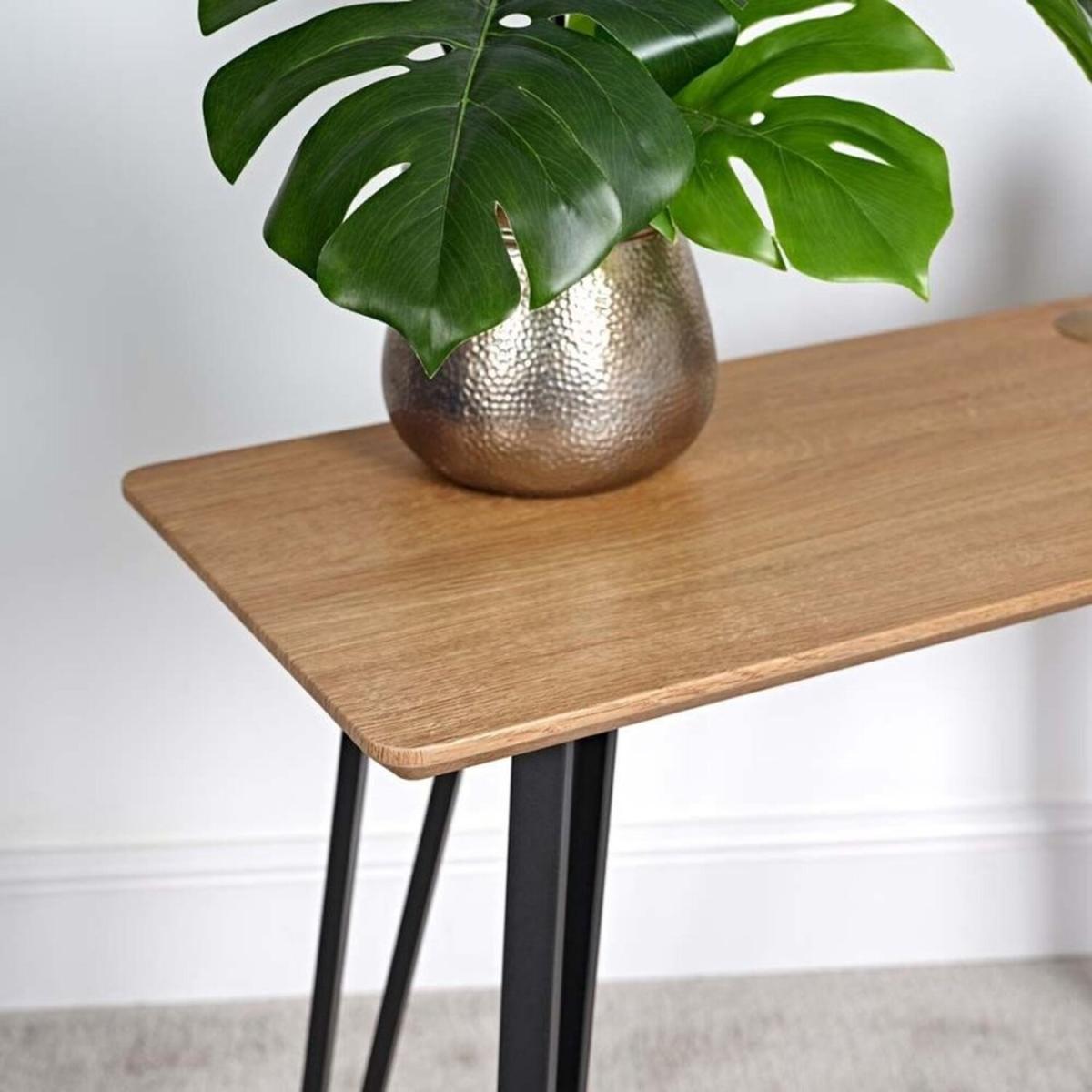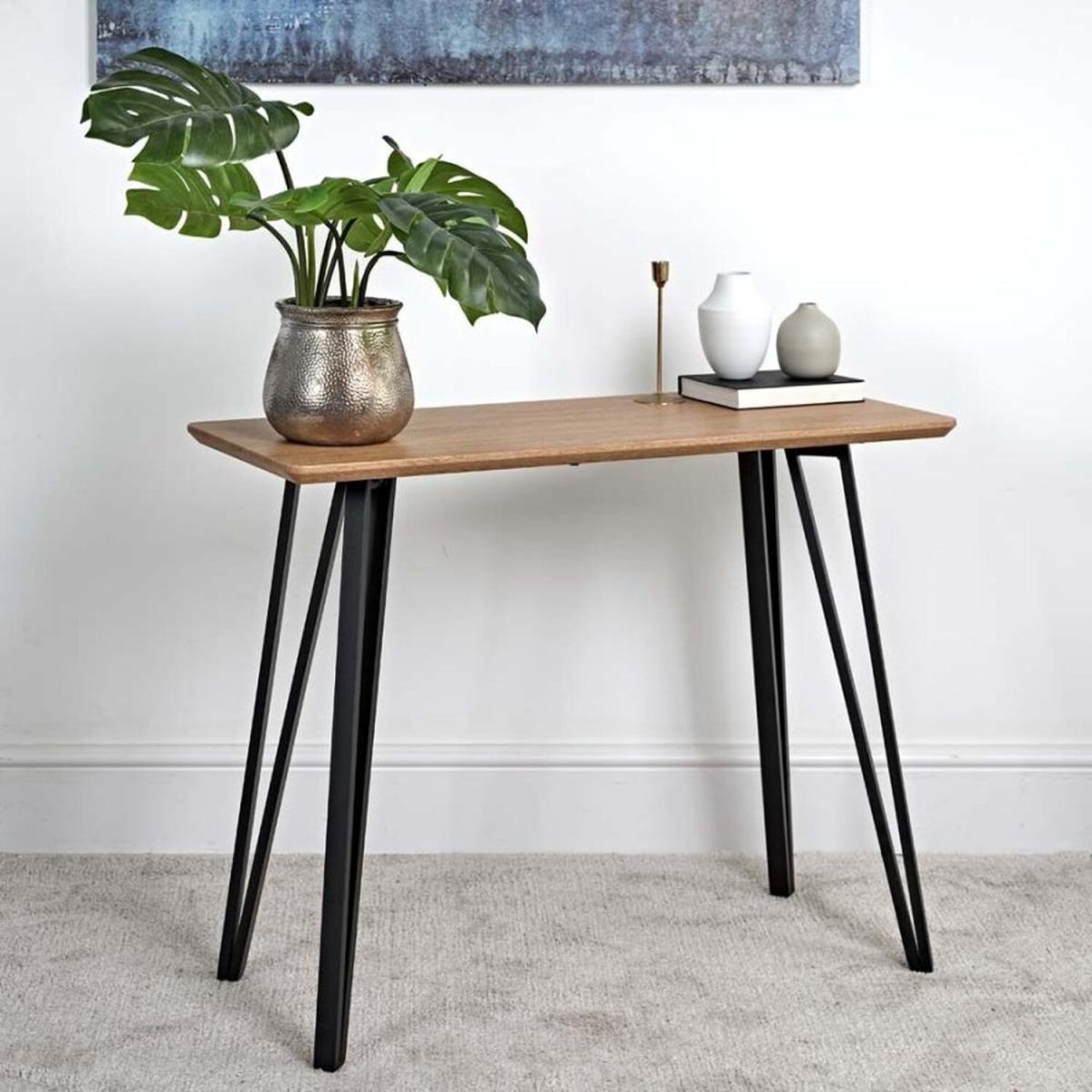 I love this wooden console table for its clean, minimalist aesthetic and versatile appeal. Its simplicity makes it a great addition to both contemporary and rustic interiors, especially those with a Scandi or industrial vibe. Practical styling tips include using it as an entryway piece, adorned with a statement lamp or some favourite decorative objects, or as a side table in a living room with a stack of books and a small plant to add warmth. Its slim profile also makes it ideal for narrower spaces, while the timeless wood finish allows it to be styled easily with other textures and colours in your scheme.